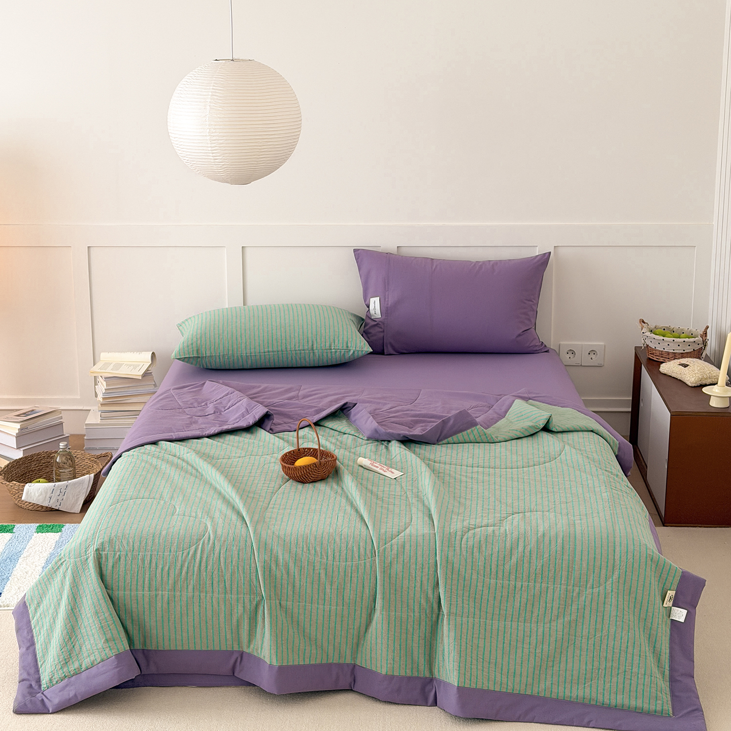 • 91家纺网 家纺一手货源 找家纺 玖弘家居 2026新款凉感亲肤羽丝棉夏被 绿紫条
