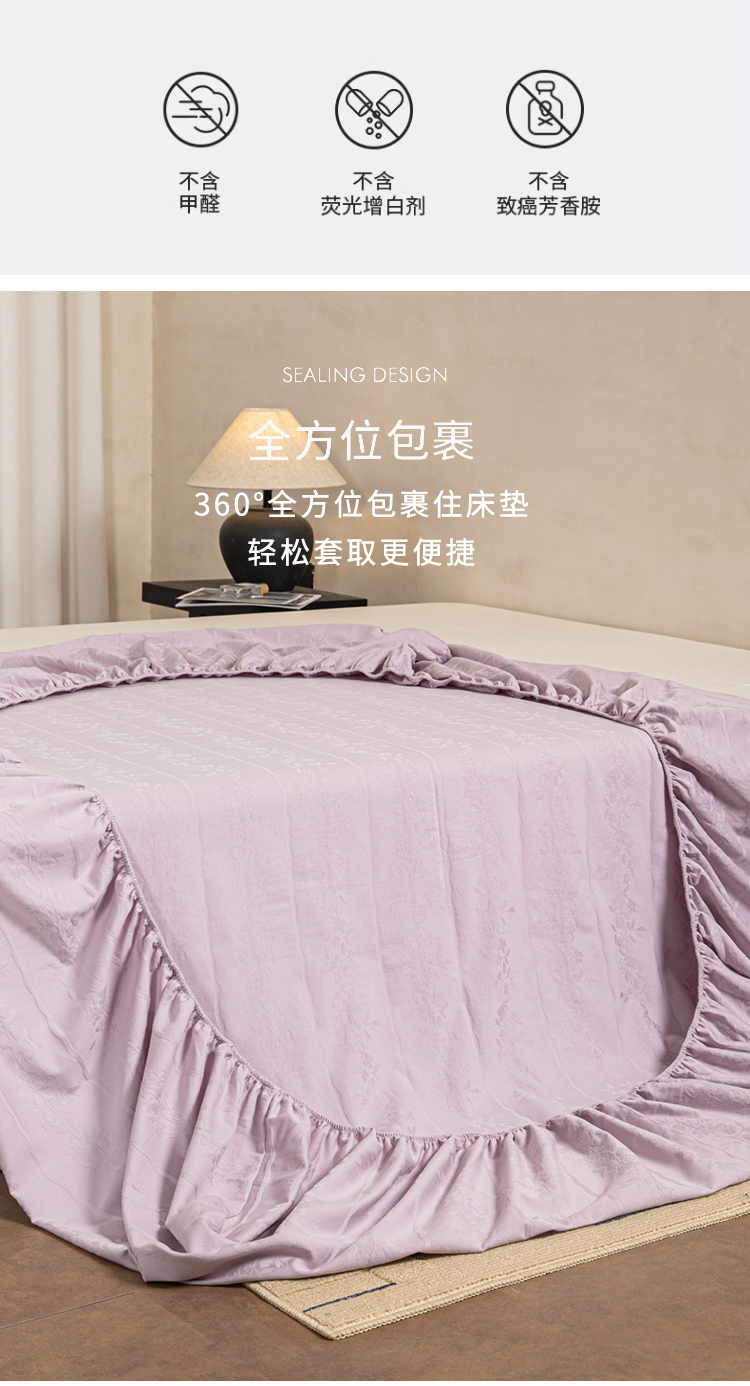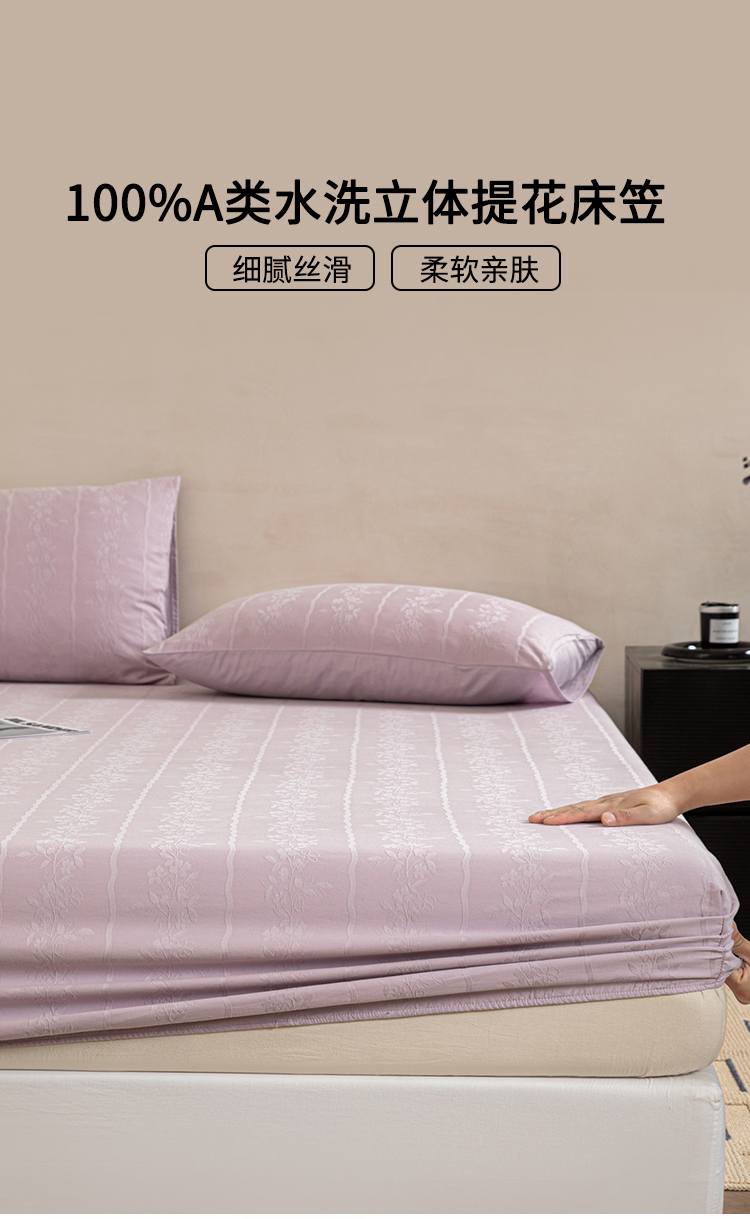 • 91家纺网 家纺一手货源 找家纺 眠博士 2026春夏新款60水洗立体提花床笠床笠单价 床笠-花间梦-紫
