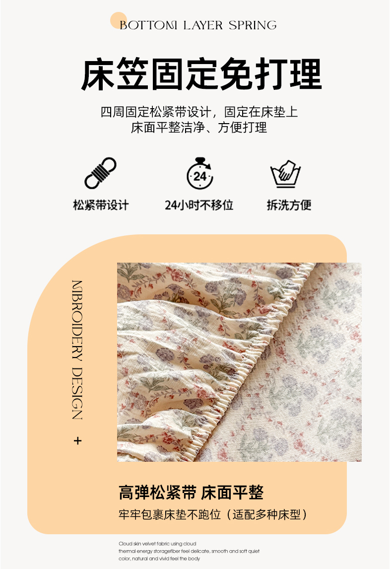 • 91家纺网 家纺一手货源 找家纺 丝芙妮家居 2026新款四季皱皱棉柔软透气不闷汗木棉床笠单件三件套-系列三 花清梦