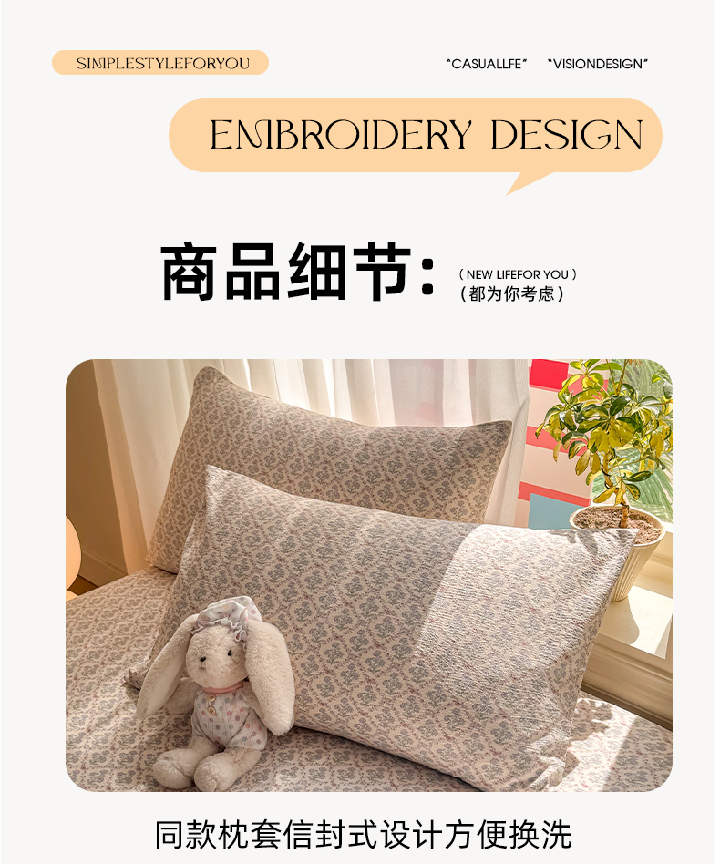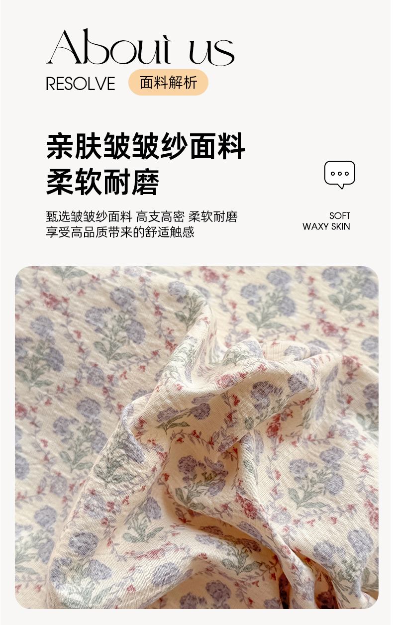 (总)丝芙妮家居 2026春夏新款皱皱棉双层纱泡芙棉四件套,晨光-黄,花簇,怀旧-兰,牧歌,顽宠,雅蔓,樱桃,晨光-灰,云蝶-粉,云蝶-兰,知锦