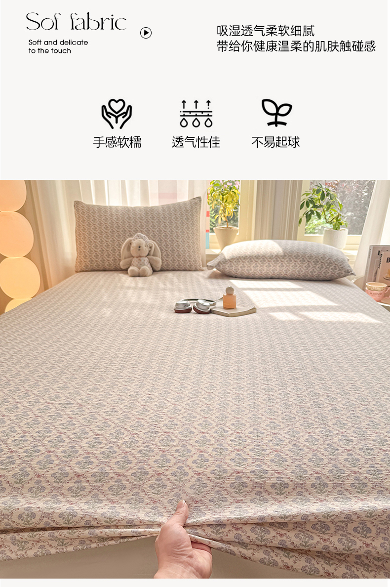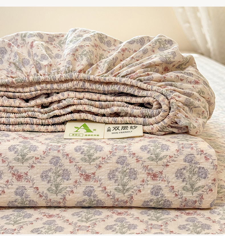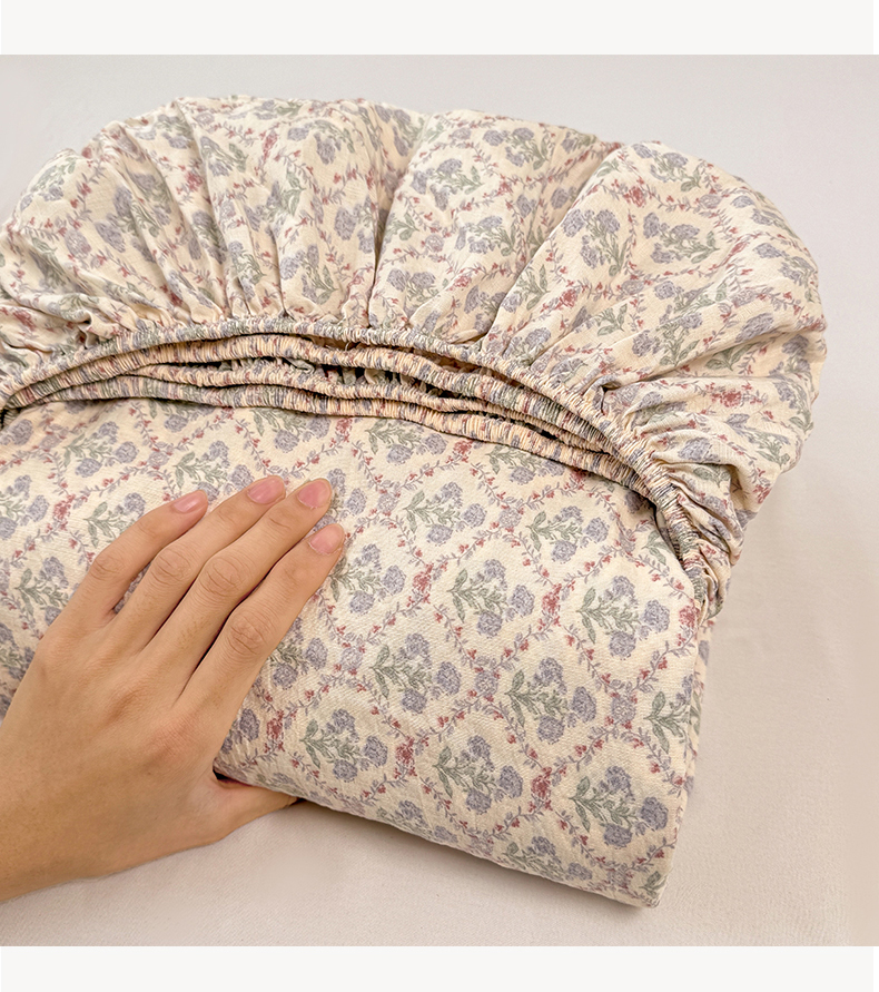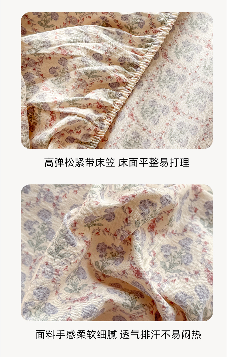 丝芙妮家居 2026新款四季皱皱棉柔软透气不闷汗木棉床笠单件三件套-系列三 花清梦