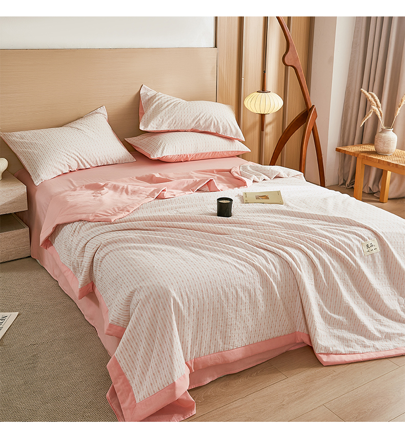 • 91家纺网 家纺一手货源 找家纺 鸣升家纺 2026新款全棉纯棉麦香提花系列大豆夏被夏凉被空调被 麦香提花简约粉