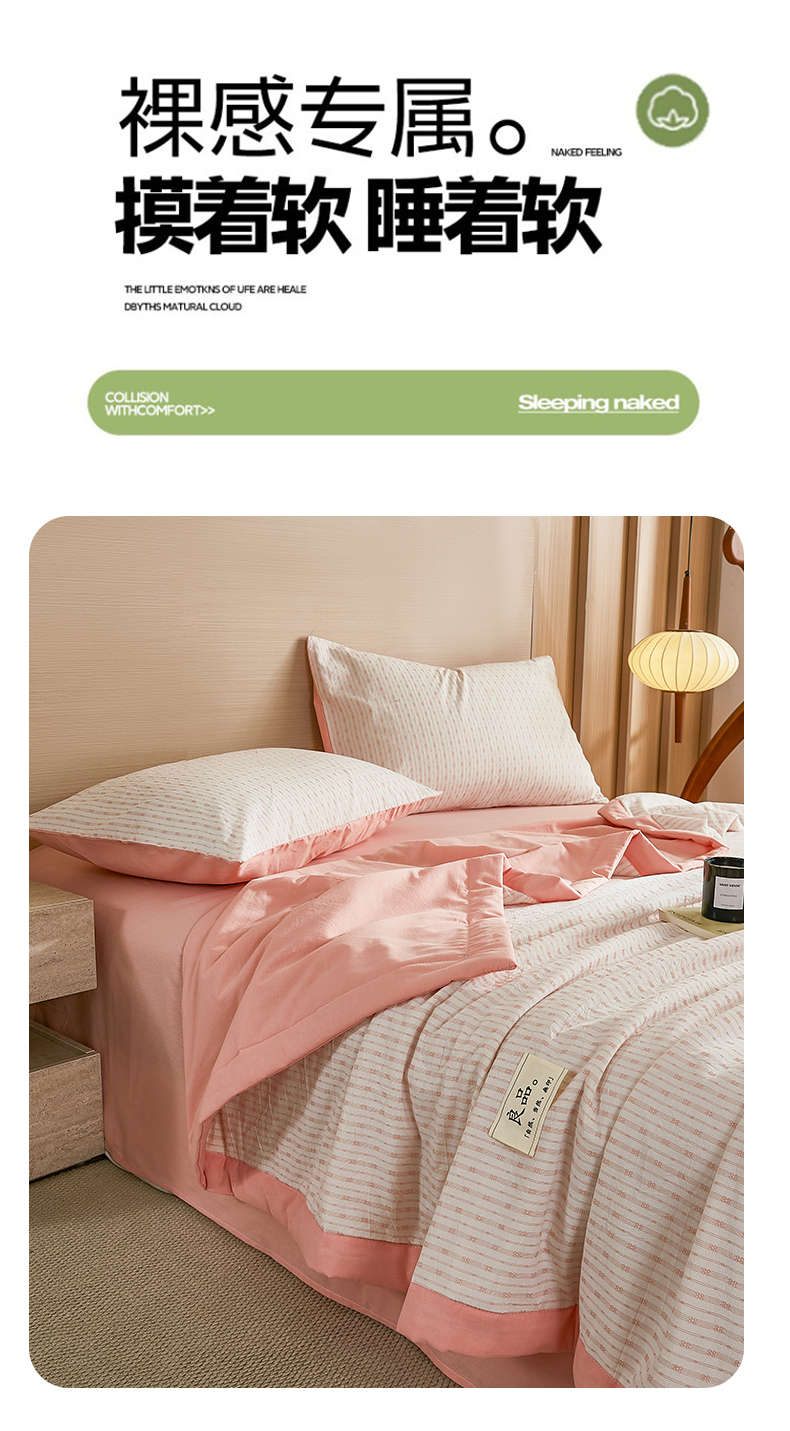 (总)鸣升家纺 2026新款A类全棉水洗棉条纹提花大豆纤维夏被四件套空调被,条纹提花粉,条纹提花灰,条纹提花蓝,条纹提花驼