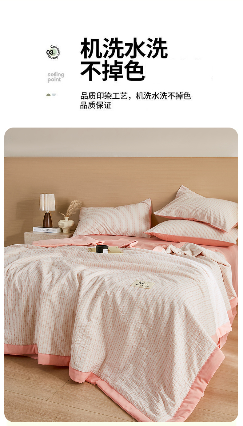 • 91家纺网 家纺一手货源 找家纺 (总)鸣升家纺 2026新款A类全棉水洗棉条纹提花大豆纤维夏被四件套空调被,条纹提花粉,条纹提花灰,条纹提花蓝,条纹提花驼
