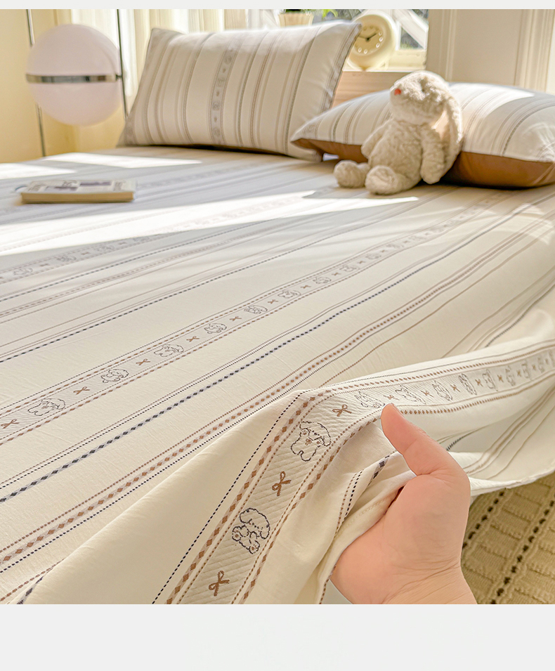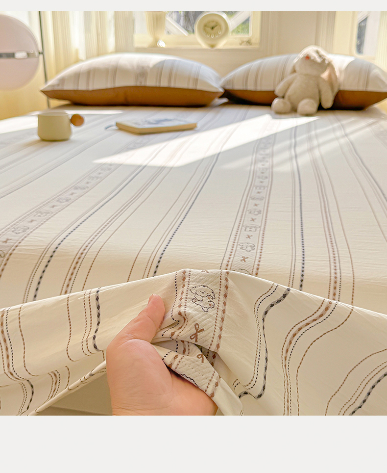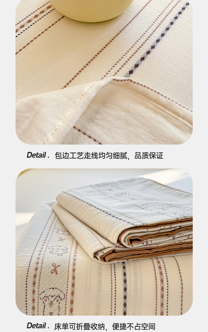 • 91家纺网 家纺一手货源 找家纺 灰鲸 2026新款全棉纯棉色织提花床单单床单床单单件 线条小狗-咖