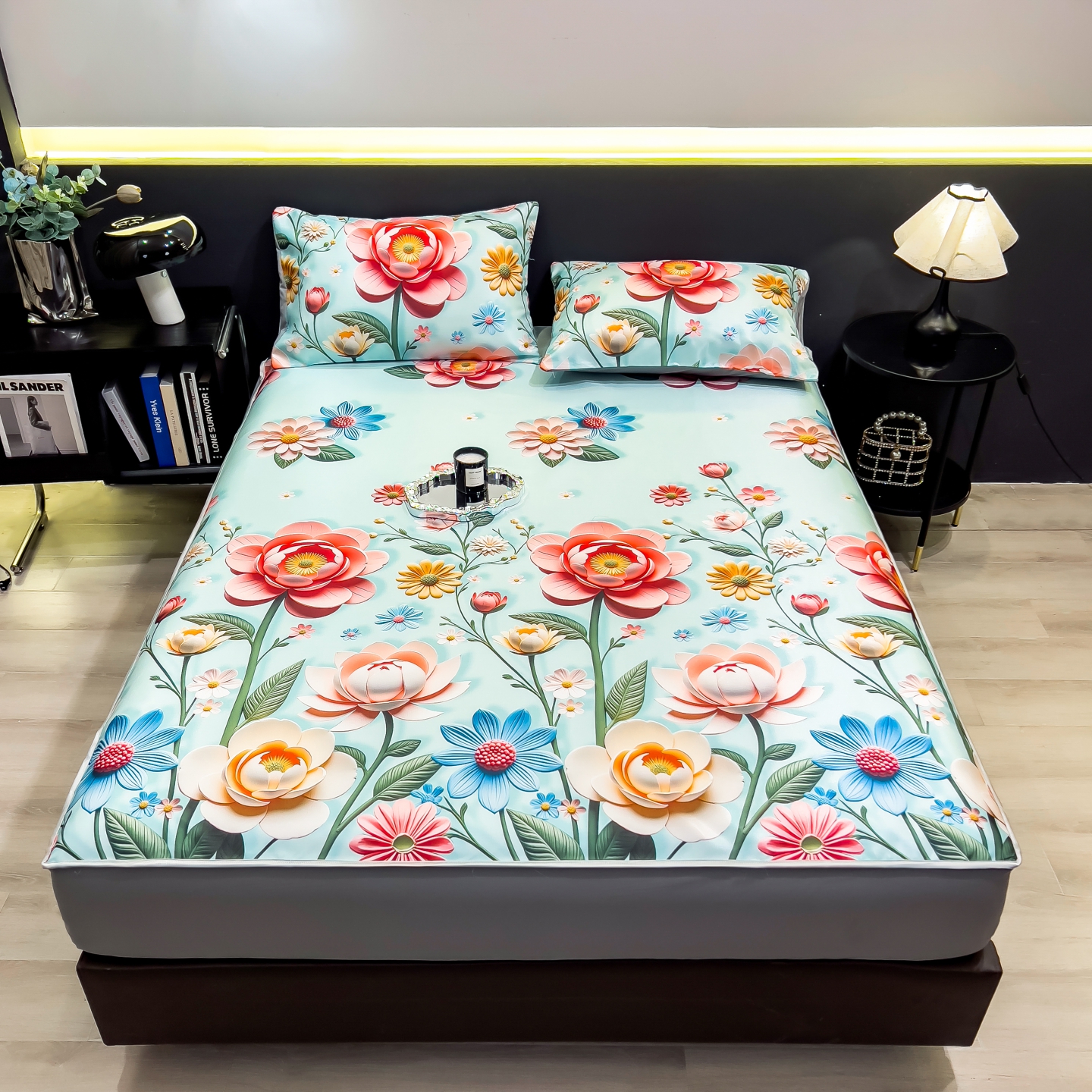 梵克保罗 2026春夏新款数码印花大版高克重冰丝凉席床笠款三件套 清风