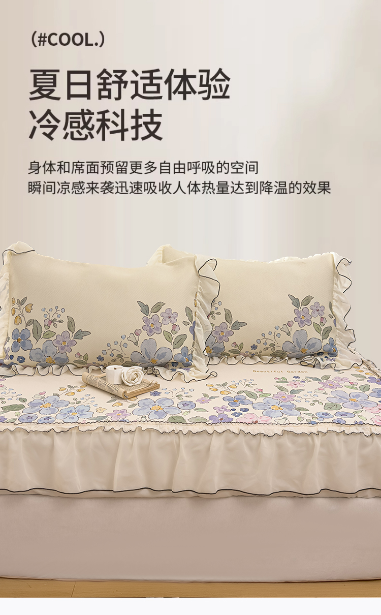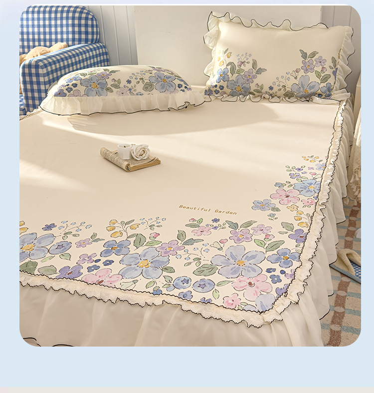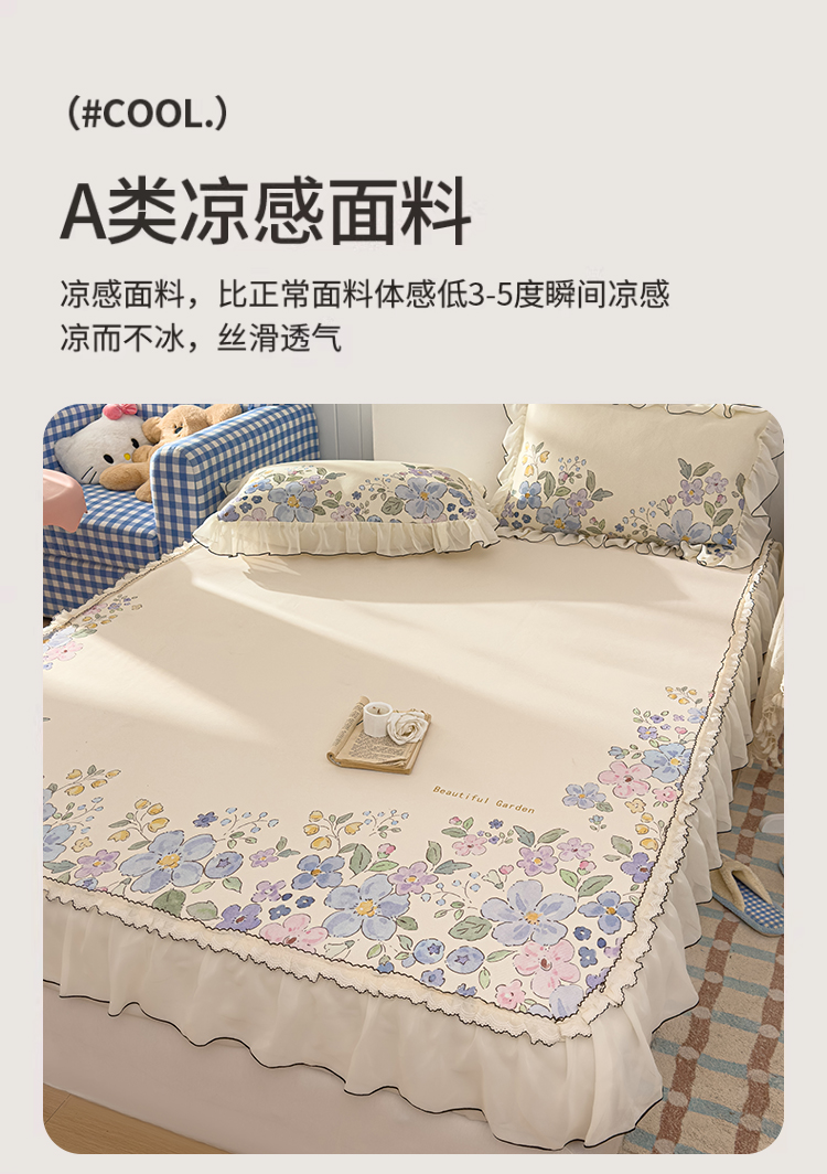 商品名称:川悦生活 2026新款凉豆豆凉感冰丝床裙三件套 莫奈花园
