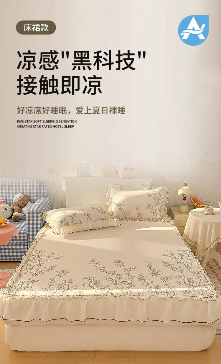 商品名称:川悦生活 2026新款凉豆豆凉感冰丝床裙三件套 月净花清