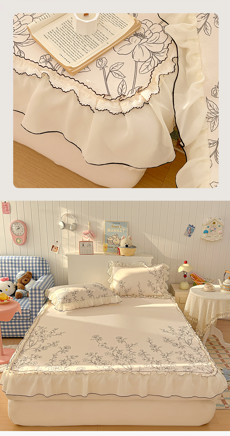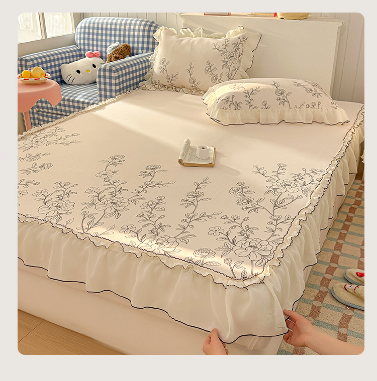 川悦生活 2026新款凉豆豆凉感冰丝床裙三件套 月净花清