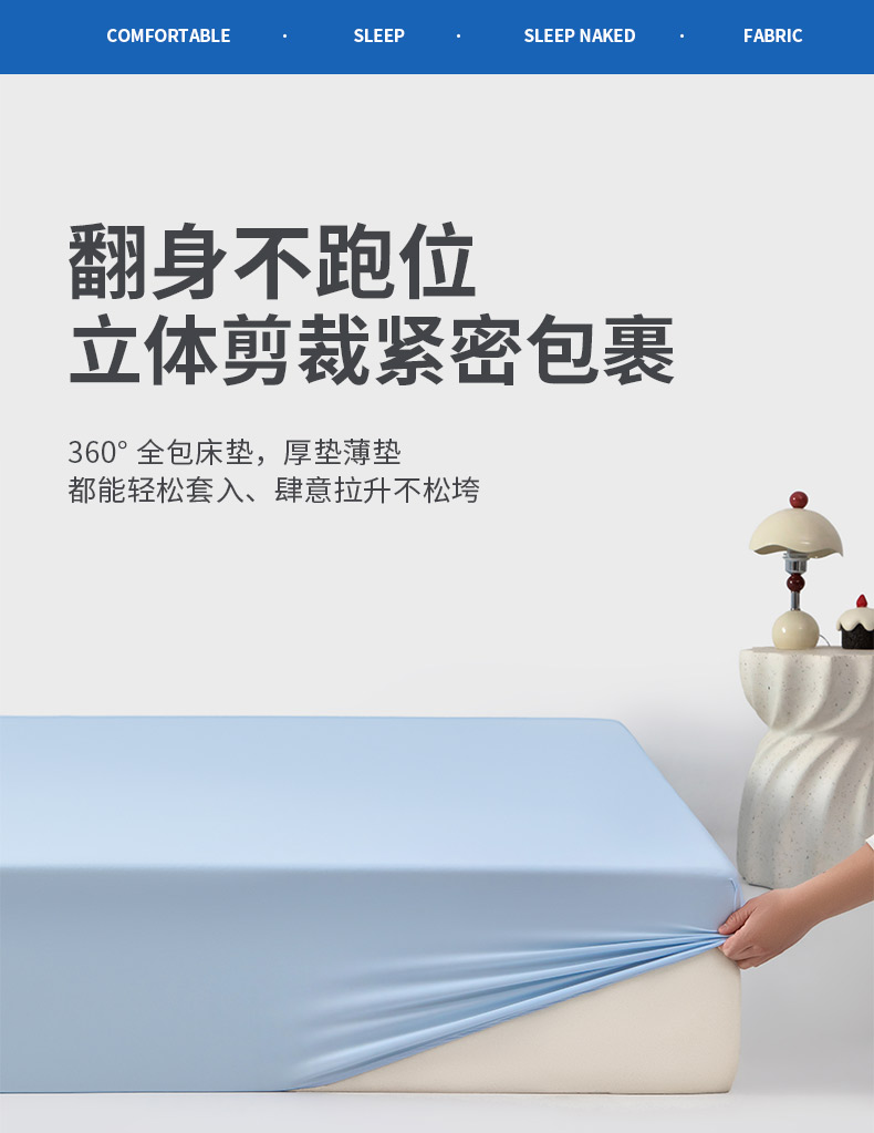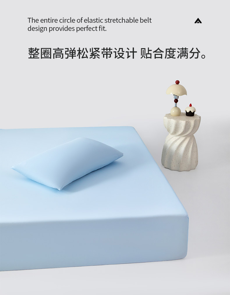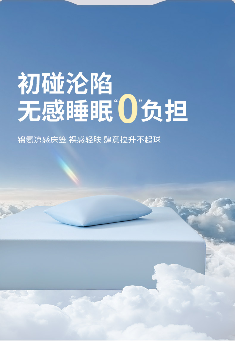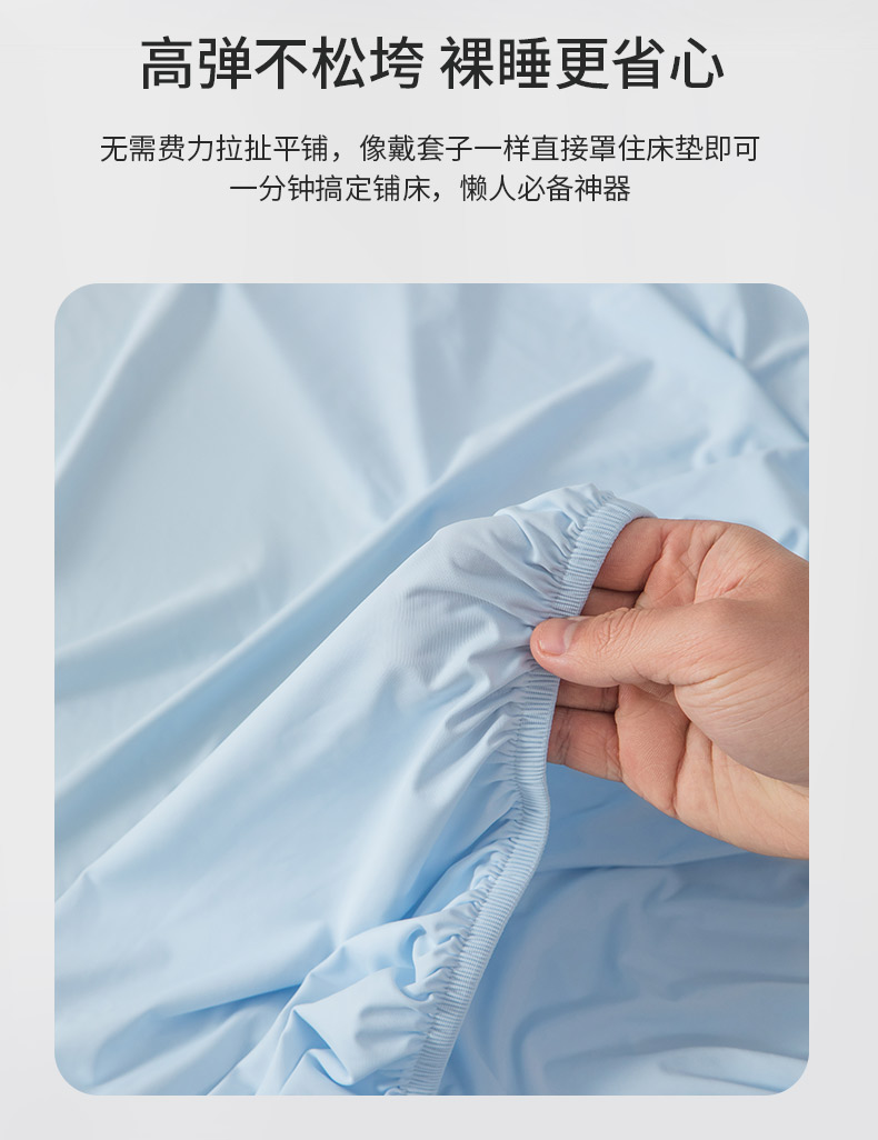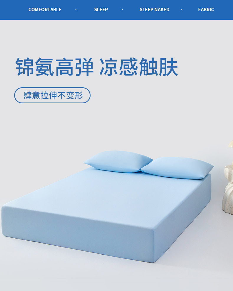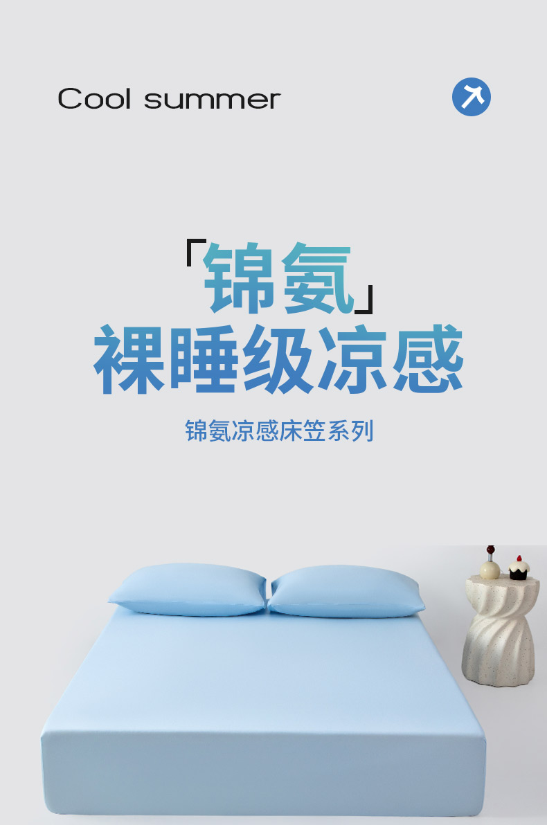 商品名称:其奥家纺 2026新款锦氨凉感床笠三件套A类耐磨5级0.35凉感有检测报告 晴蓝