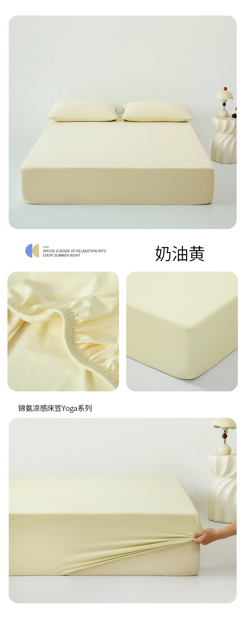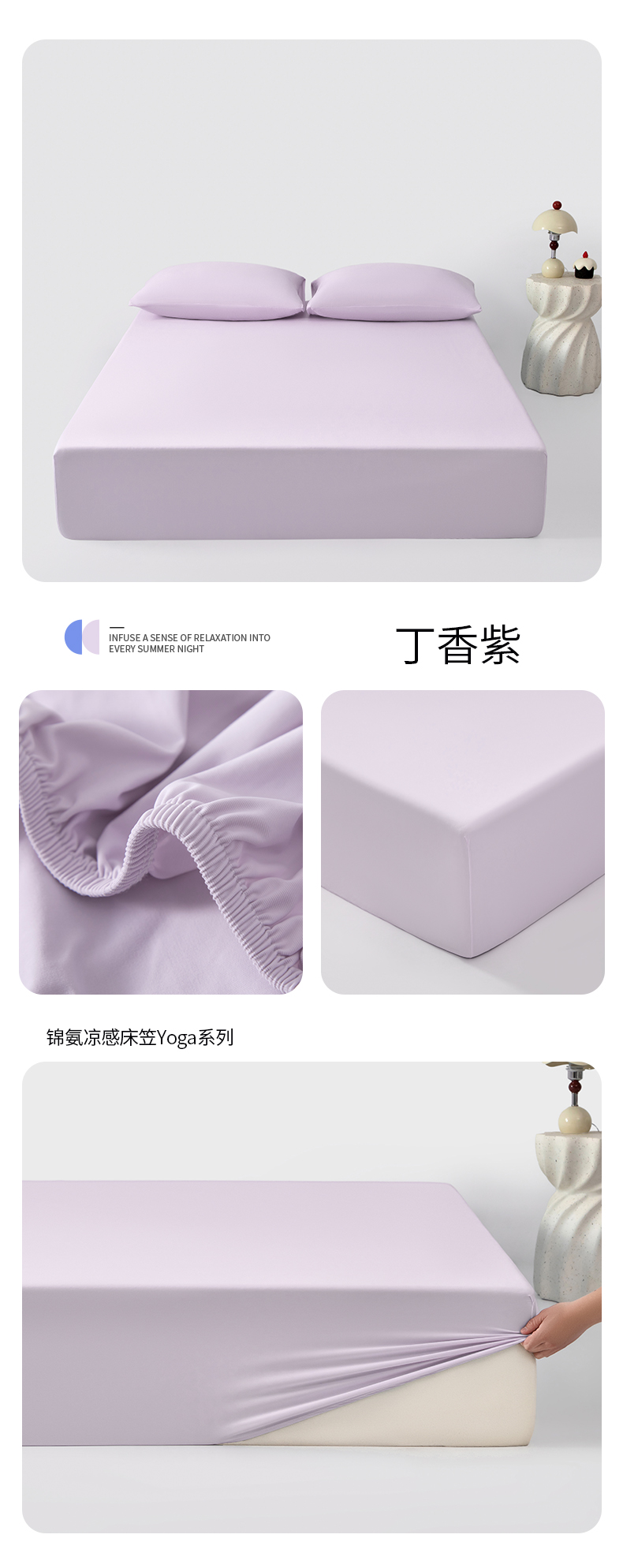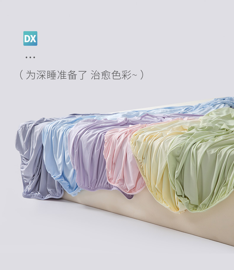(总)其奥家纺 2026新款锦氨凉感床笠三件套A类耐磨5级0.35凉感有检测报告,香草绿,丁香紫,芦灰,奶油黄,晴蓝,雾粉