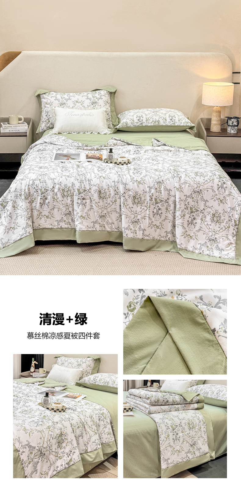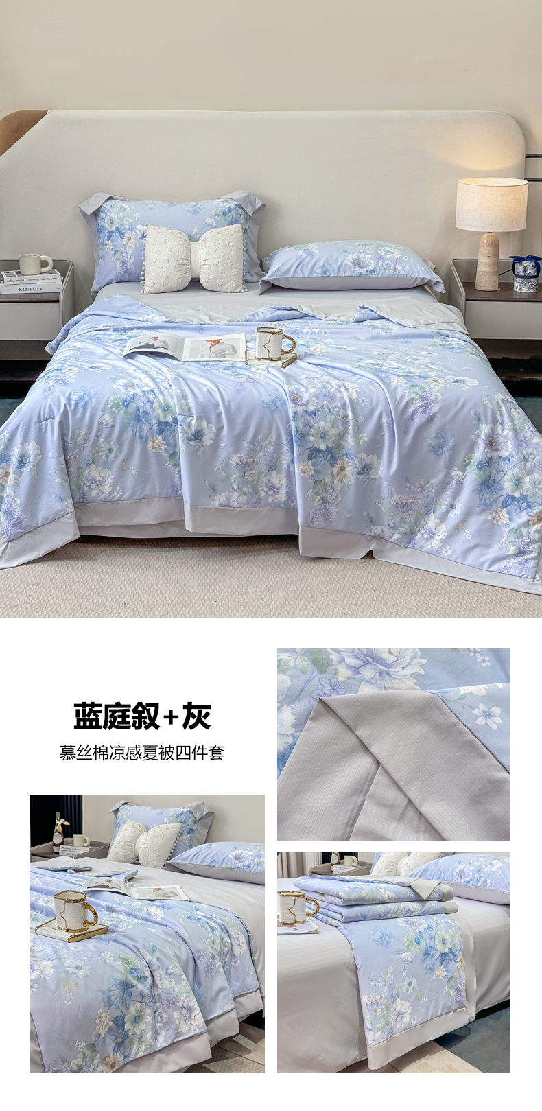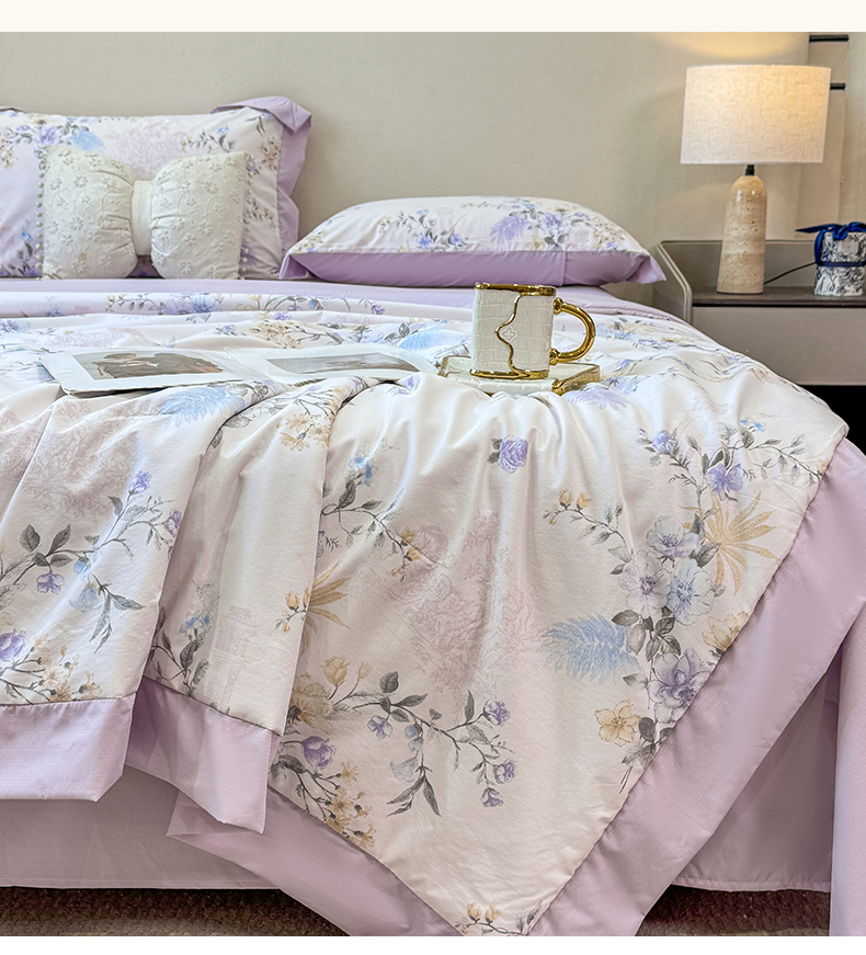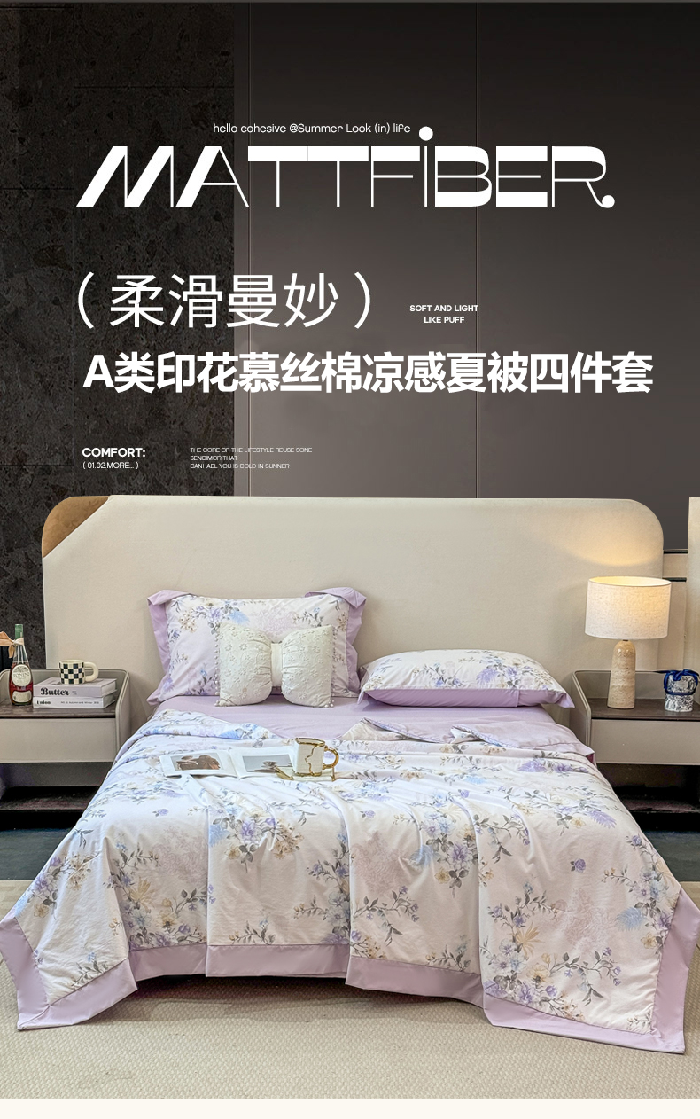 当前位置: 91家纺网 > 商品网购 > 床品套件 > 四件套 > 其它四件套 > 慕木家纺 2026新款A类印花慕丝棉凉感夏被夏凉被空调被四件套 凡尔赛+粉