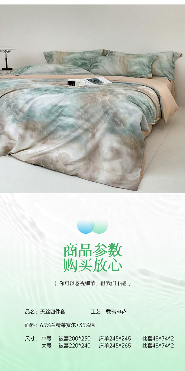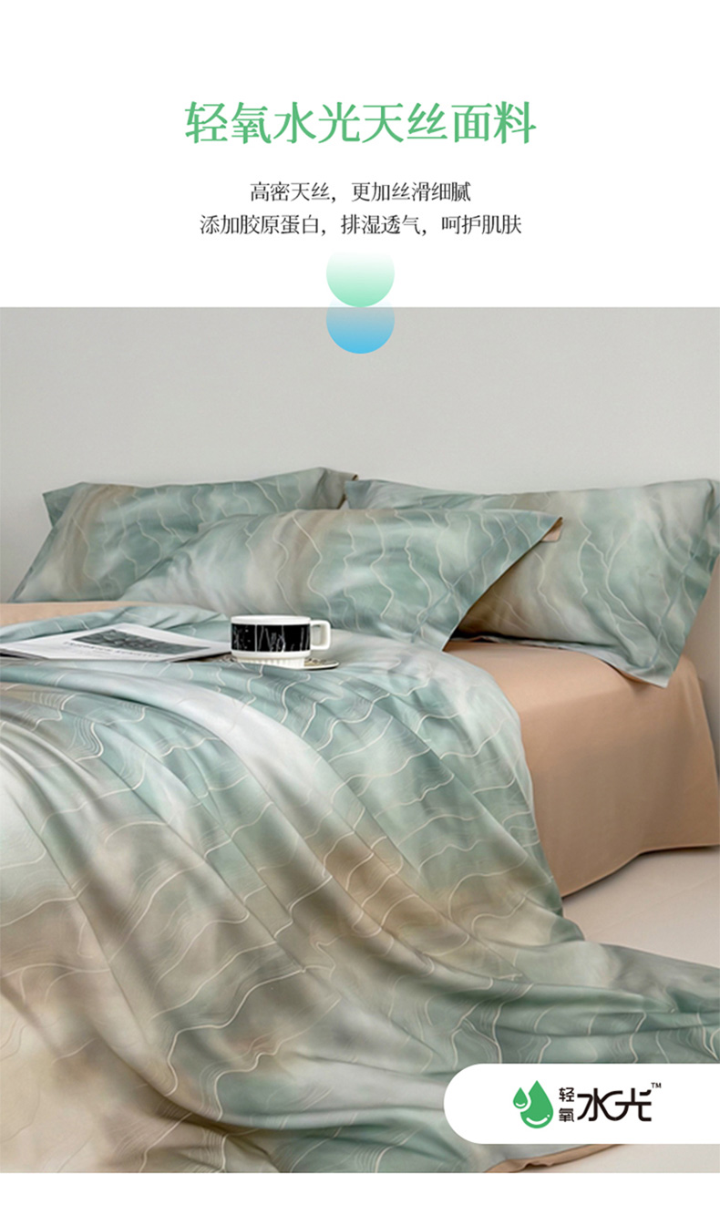 (总)金奇达家纺 2026新款茧养天丝棉四件套-【美罗拉】(标准号全网控价(折后券后)不低于 258元),斑尼灰,碧玉绿,南汐