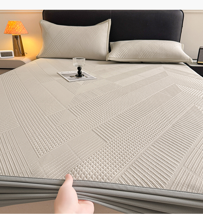 当前位置: 91家纺网 > 商品网购 > 床上用品 > 凉席 > 凉席套件 > 慕木家纺 2026新品A类高克重高端复合三明治PE乙纶提花冰豆豆凉席床笠都市棱境系列(提供买家秀) 床席款都市棱境-卡其