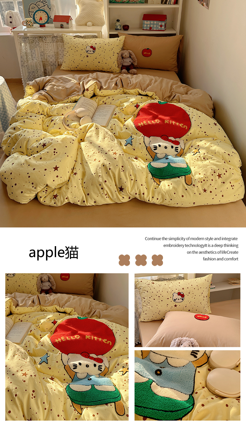 当前位置: 91家纺网 > 商品网购 > 床品套件 > 四件套 > 毛巾绣四件套 > 玉海棠家纺 2026新款高克重超软糯可爱系毛巾绣四件套 时髦小猫
