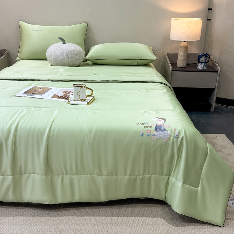 • 91家纺网 家纺一手货源 找家纺 (总)蕾诺家纺 2026新款冰丝刺绣真丝轻奢简约夏被 被子被芯,潮流-墨绿,潮流-繁星蓝,潮流-高级灰,潮流-奶油粉,潮流-嫩黄,潮流-浅灰,潮流-月光蓝