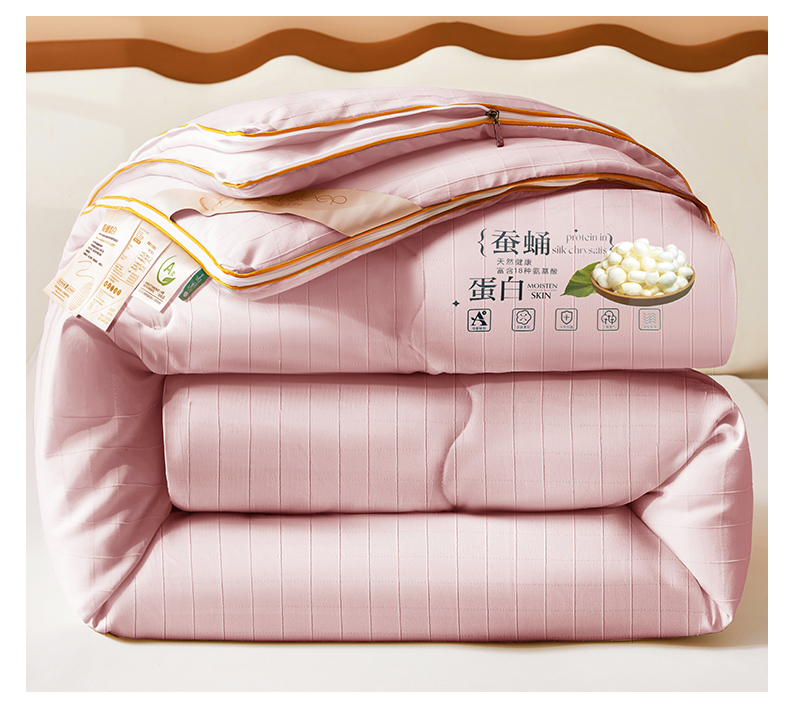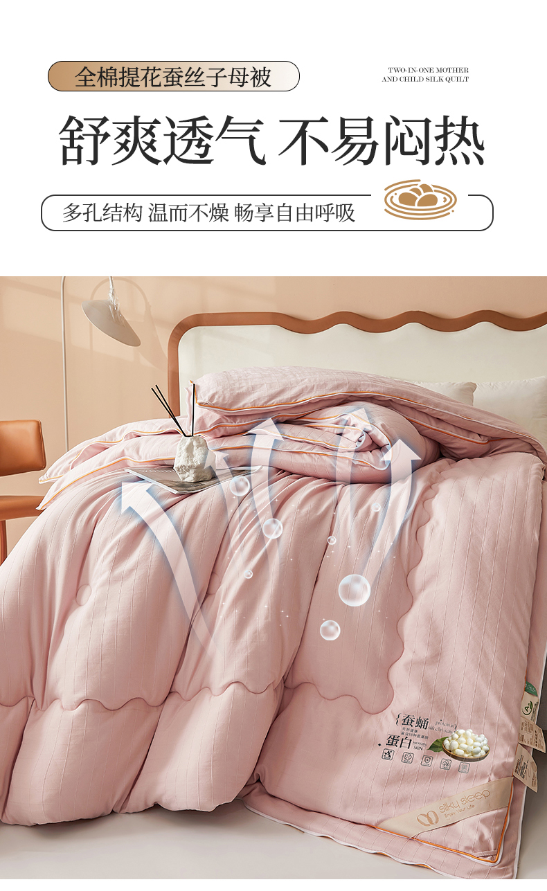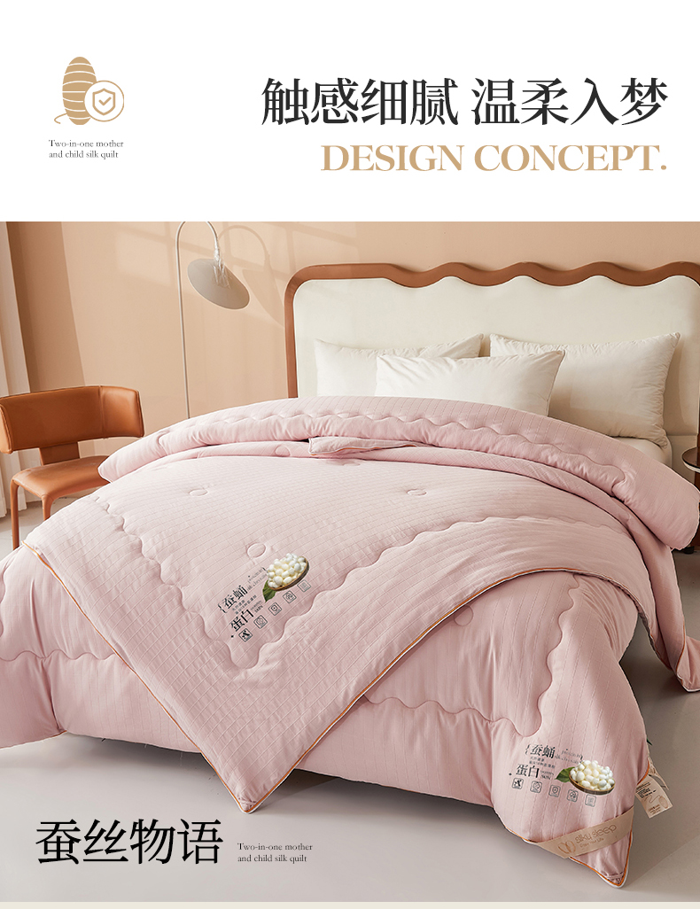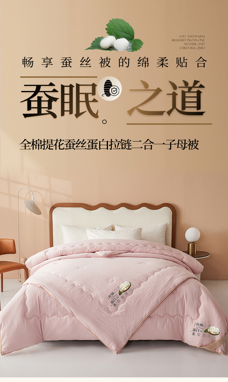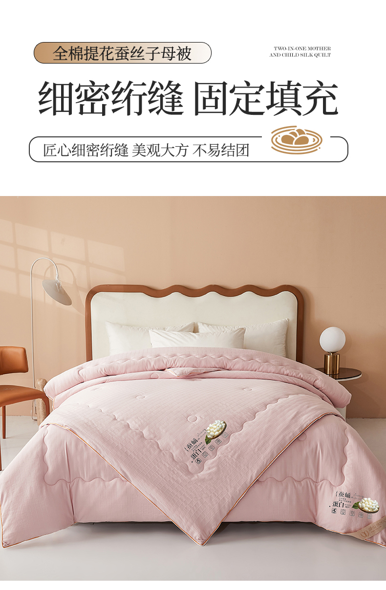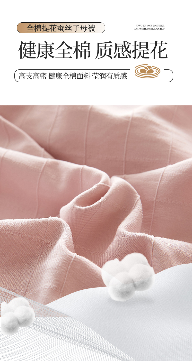 • 91家纺网 家纺一手货源 找家纺 小禹仔家纺 2026新款全棉提花蚕丝被拉链二合一子母被冬被春秋被夏被被子被芯加厚棉被 柔肤粉