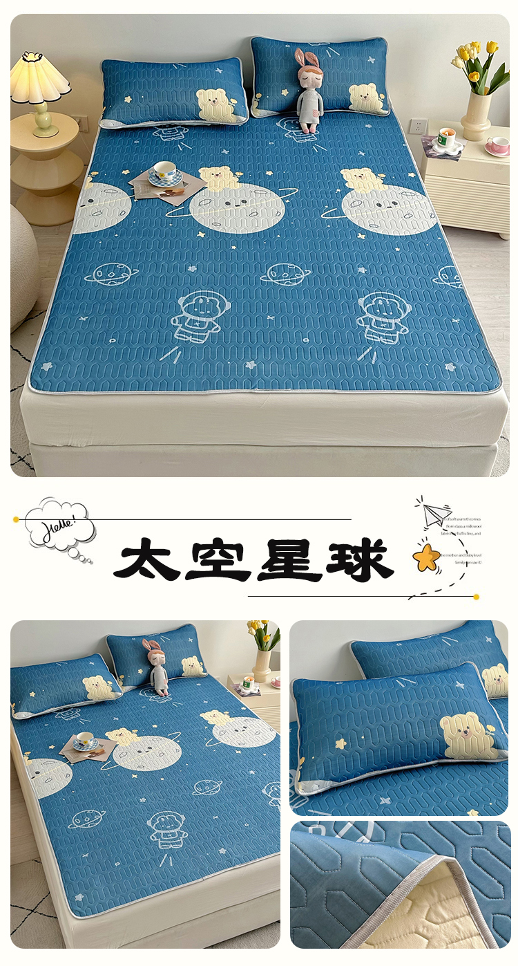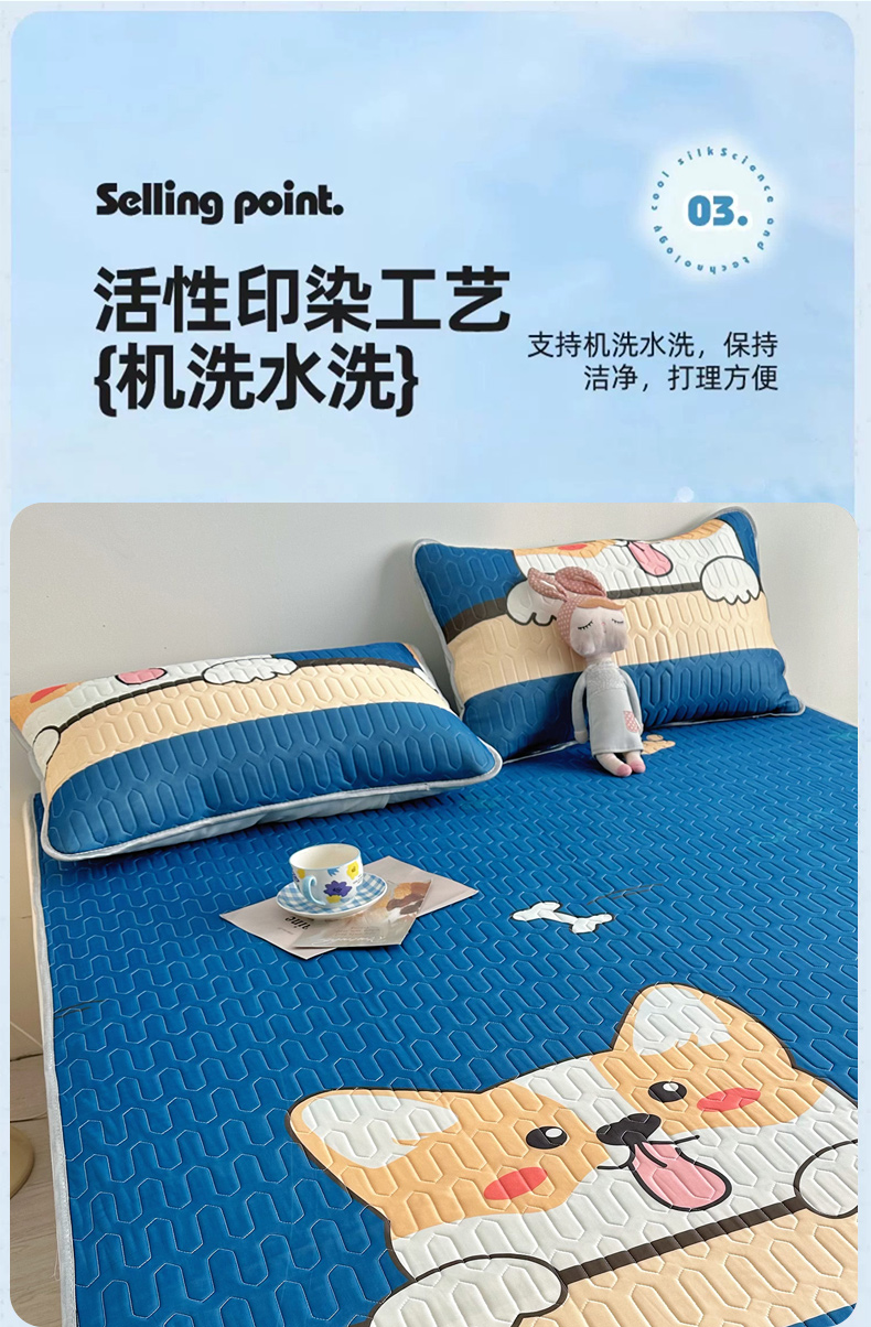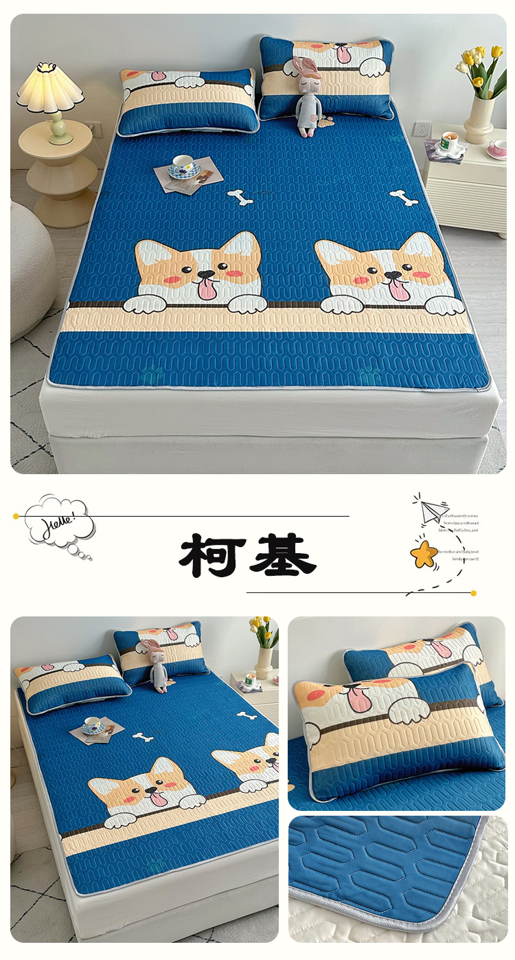 (总)佳鸿家纺 2026新款卡通乳胶凉席二件套三件套冰丝软席空调席跨境爆款,抱抱,柴犬,柯基,恐龙,萝卜兔,趴趴狗,太空星球