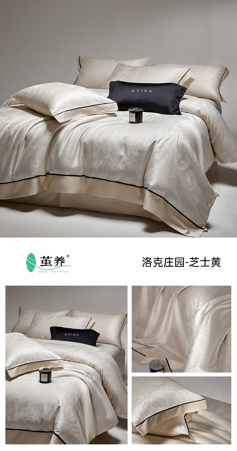 (总)金奇达家纺 2026新款丝光色织提花四件套-洛克庄园系列(标准号全网控价(折后券后)不低于359元 会员减50),洛克庄园-邦迪蓝,洛克庄园-浣柔纱,洛克庄园-慕斯灰,洛克庄园-芝士黄