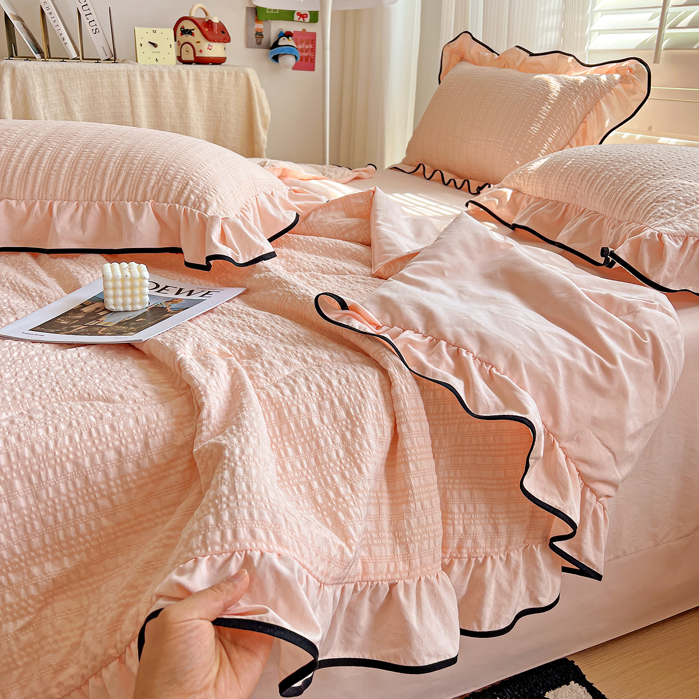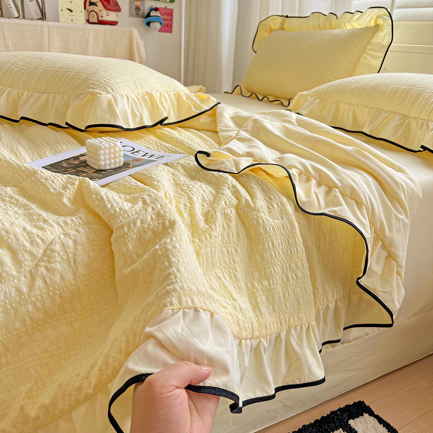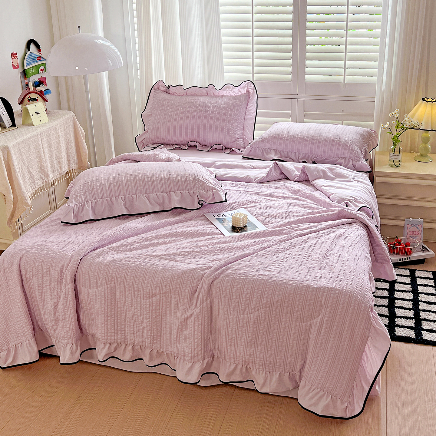 (总)一比一家纺 2026新款云感皱皱纱全棉花边款夏被四件套【控价109元】,春天里,豆蔻,蝴蝶梦,兰黛,山野栀子,素颜,微凉薄荷,心动,遇见,芝士奶酪,紫爱心,紫苏,花园兔,蜡笔画,初恋,莱茵河畔,桃花诺,春不晚,春日小熊,陌上花开,莫奈,若欢-绿,若欢紫色,舒芙蕾,田园拾趣-黄,兔小姐,郁金香小兔,乖乖象,波点小兔粉,波点小兔兰,情人节,十里桃花粉,十里桃花紫,夏天,运动健将熊,白月光,缤纷几何,格格西高地,海盐蓝小格,黎漫,木槿绿,奶油泡芙,欧若拉,桃夭,甜茶,小晴天,芋泥紫小格,紫色蝴蝶结,心意,心意紫