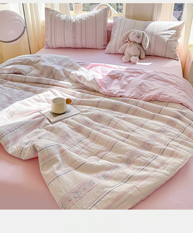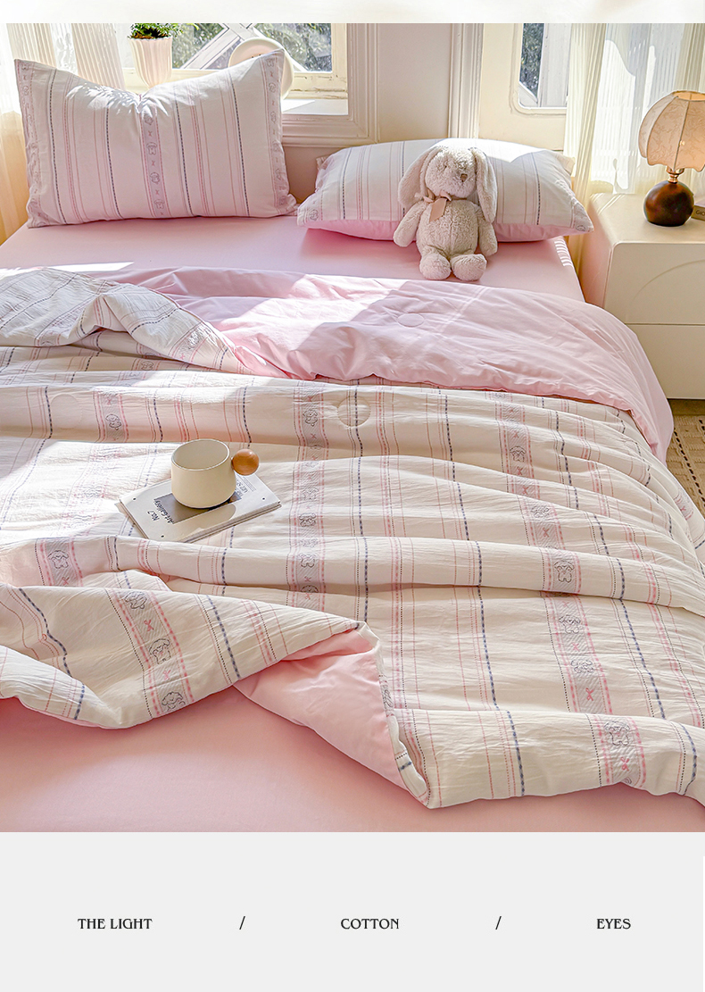 当前位置: 91家纺网 > 商品网购 > 被子 > 夏被 > 灰鲸 2026新款全棉色织提花夏被夏凉被空调被 线条小狗-粉