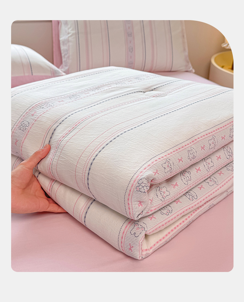 • 91家纺网 家纺一手货源 找家纺 灰鲸 2026新款全棉色织提花夏被夏凉被空调被 线条小狗-粉