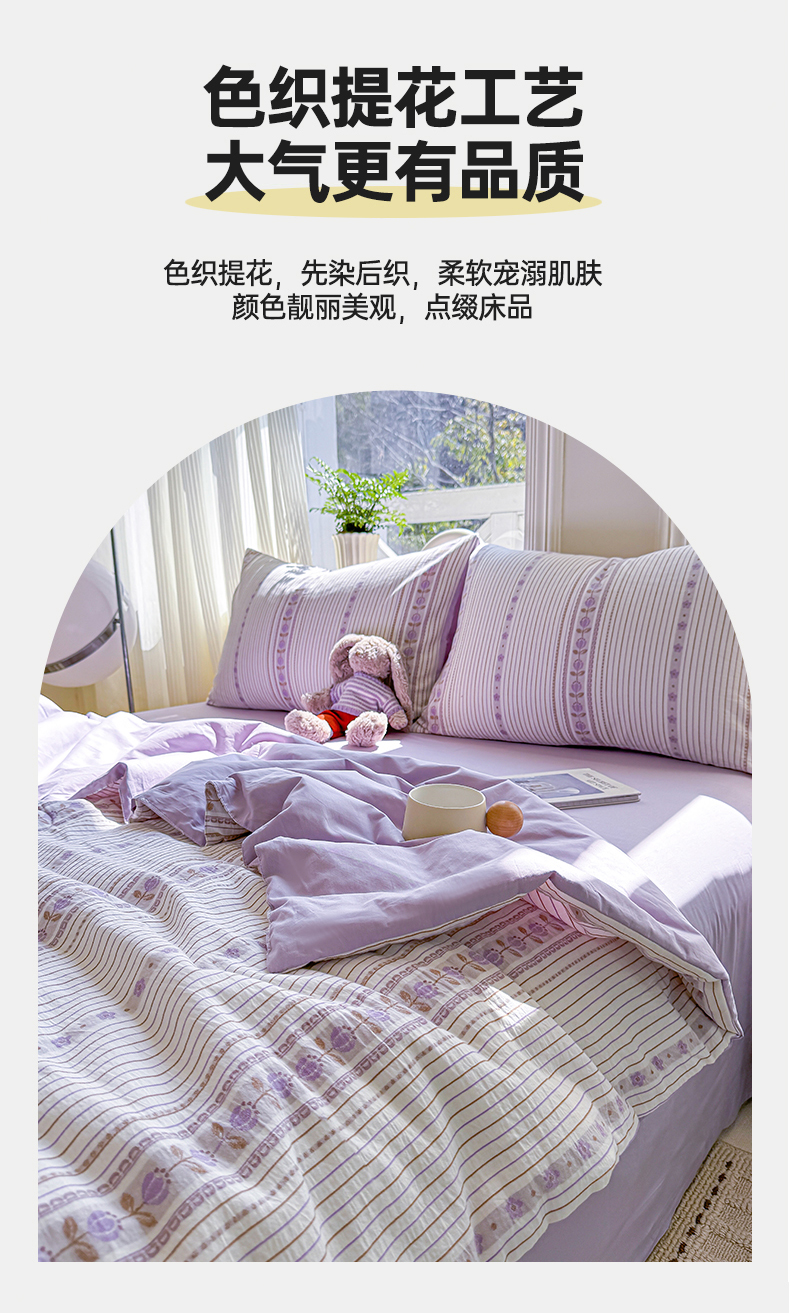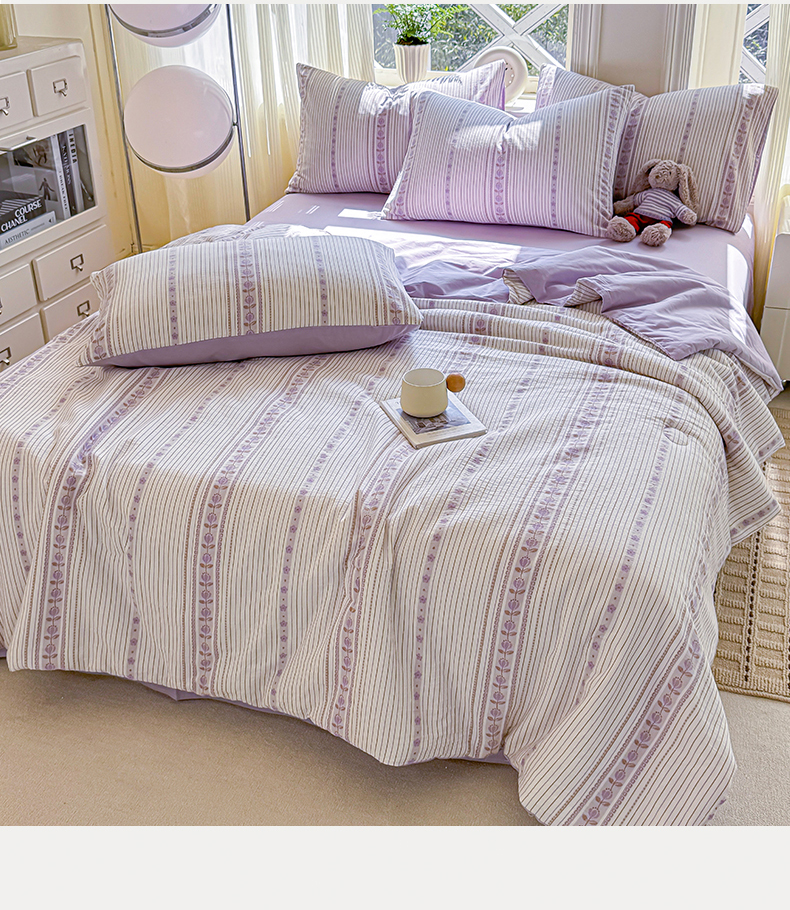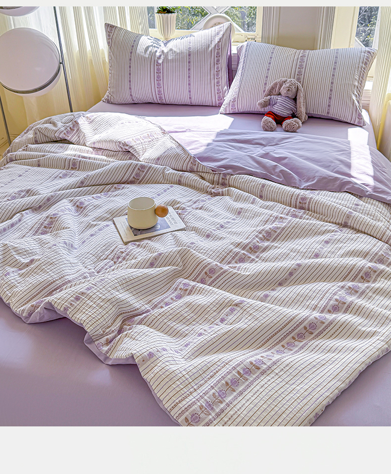 • 91家纺网 家纺一手货源 找家纺 灰鲸 2026新款全棉色织提花夏被夏凉被空调被 木槿-紫
