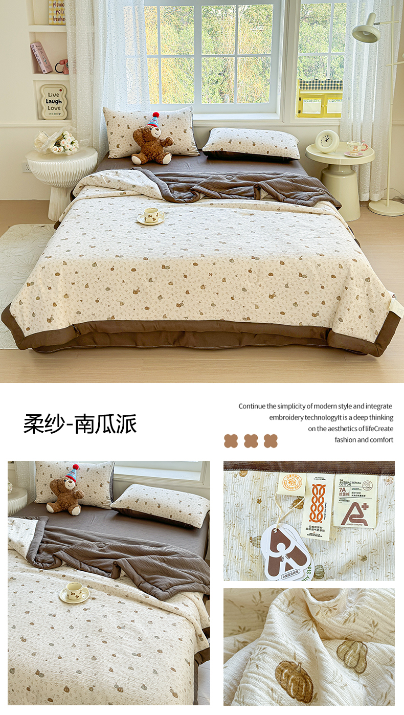 几禾 2026新款A类三层纱印花夏被-柔纱系列 柔纱-复古修勾