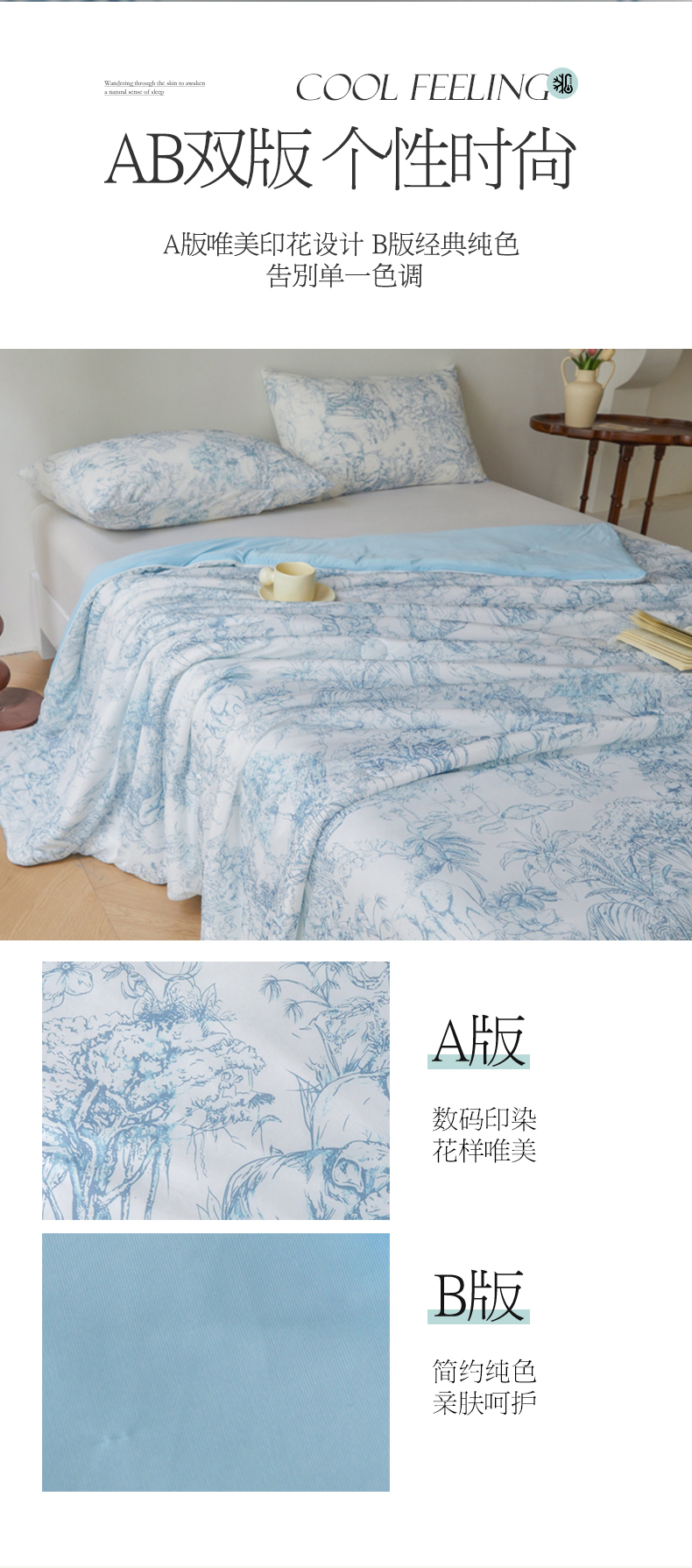 (总)小禹仔家纺 2026新款氨纶凉感印花夏被,夏瑶绿,半山花,风荷举,花陌语,曼莎,木绵芙,沐野,晴川,樱絮,櫻绯雨,薄荷绿,冰感粉,冰感粉拼薄荷绿,藏青拼天空蓝,米色,天空蓝,天空蓝拼米色,烟云灰,烟云灰拼浅灰,优雅紫