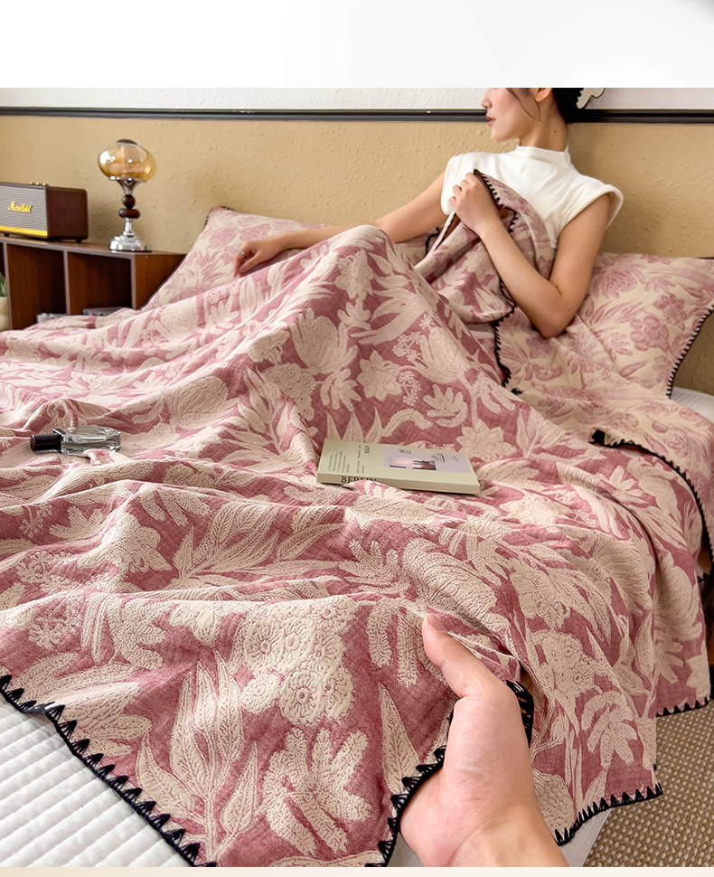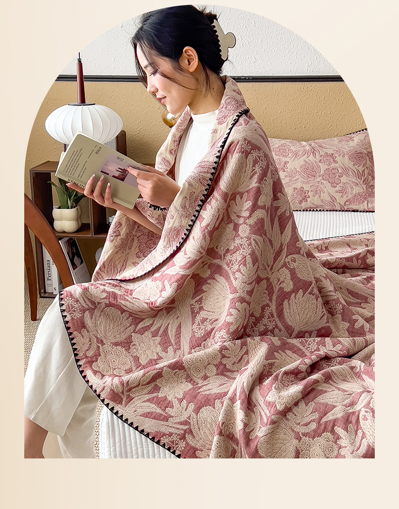 (总)云恋家纺 2026新款A类全棉四层纱三角针纱布毯全棉学生午睡被薄款沙发盖毯办公室披肩毯,花蔓流年-豆沙,菱格叙事,暮秋花语,柔花漫野,素锦,晕染灰,云格雾咖,花蔓流年-灰