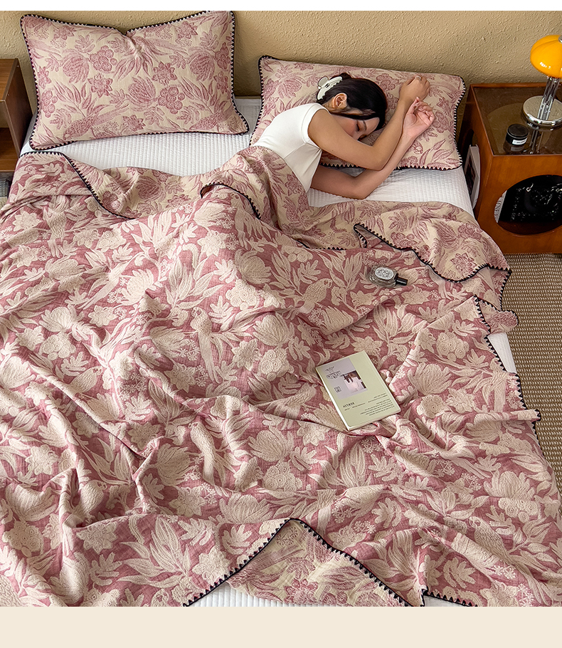 商品名称:云恋家纺 2026新款A类全棉四层纱三角针纱布毯全棉学生午睡被薄款床单沙发盖毯办公室披肩毯 素锦