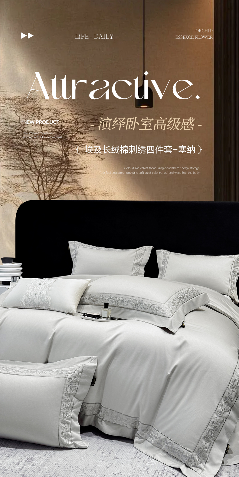 商品名称:(总)莱势 2026新款100支长绒棉全棉纯棉50x50s埃及贡缎刺绣绣花四件套高端礼盒塞纳