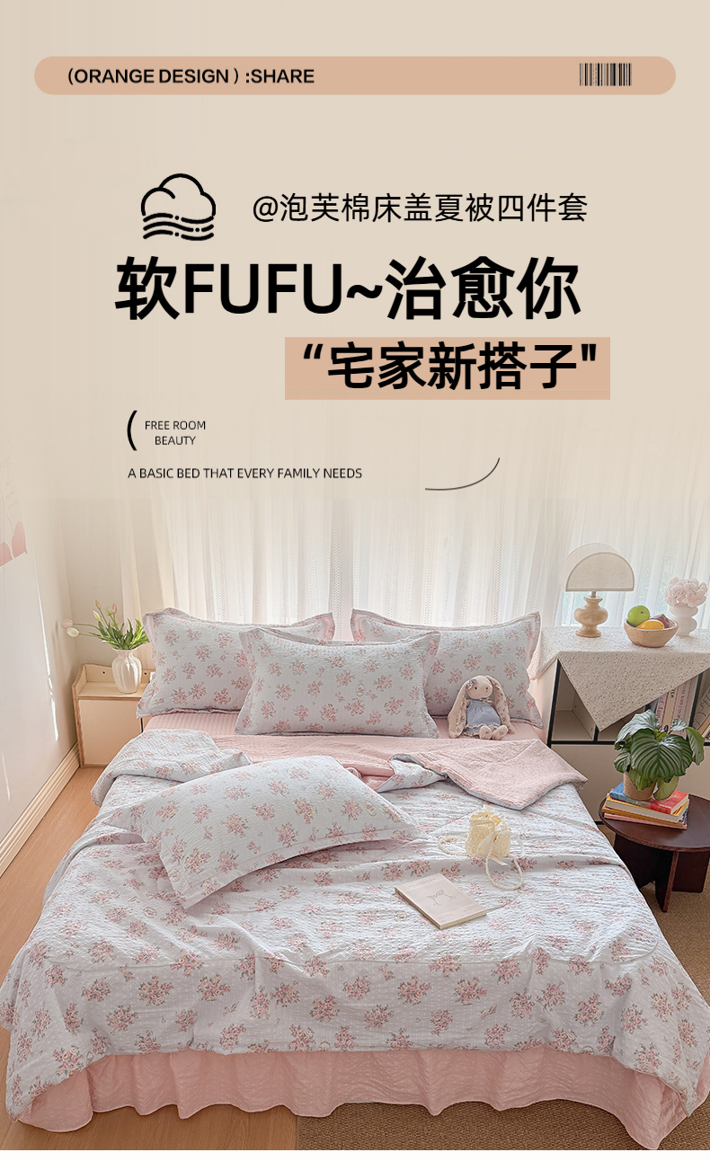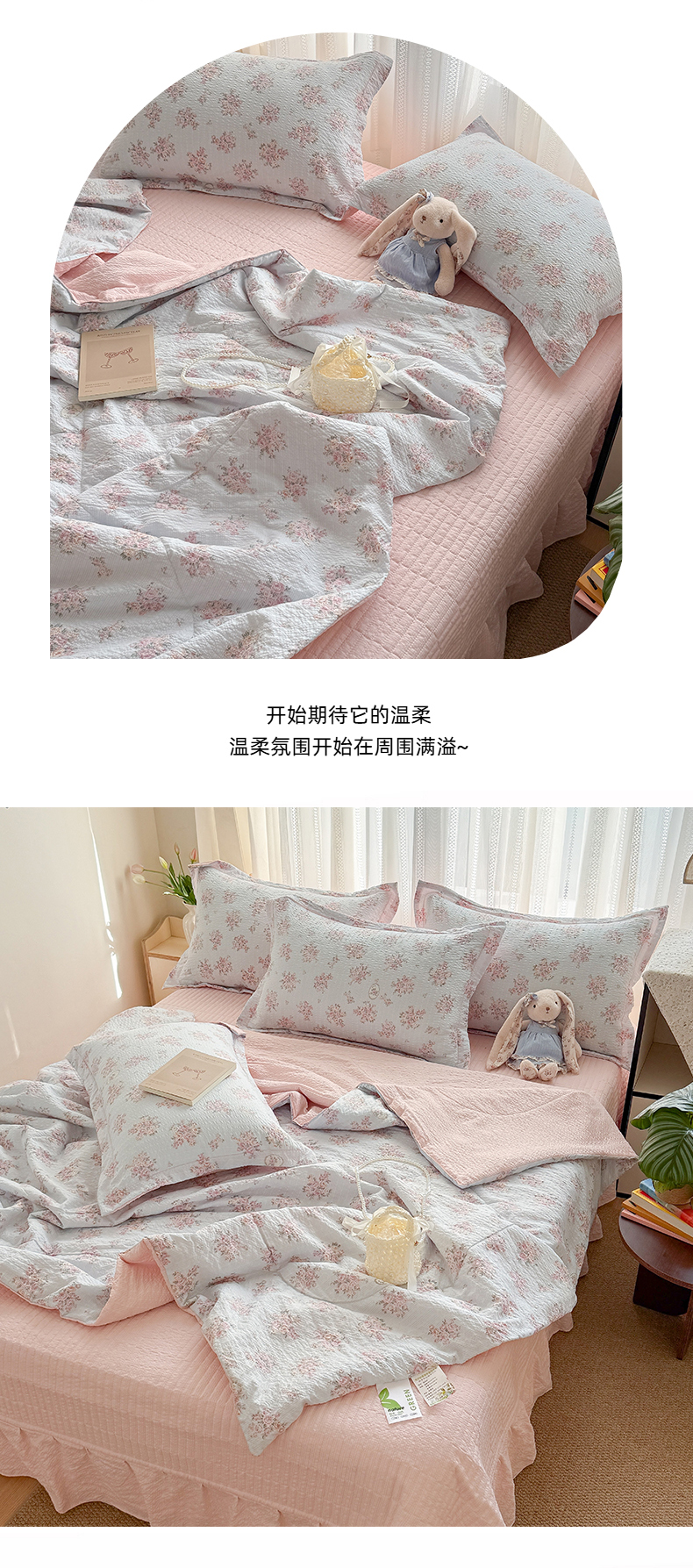 商品名称:梵希雅 2026新款云感泡芙棉泡芙纱床盖夏被四件套 仲夏