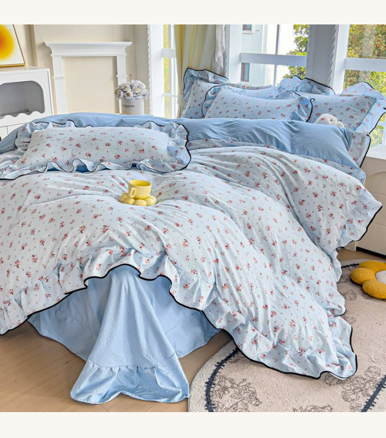 当前位置: 91家纺网 > 商品网购 > 床品套件 > 四件套 > 其它四件套 > 找底底家纺 2026新款A类泡泡棉双层纱四件套花边夏被四件套 小樱桃
