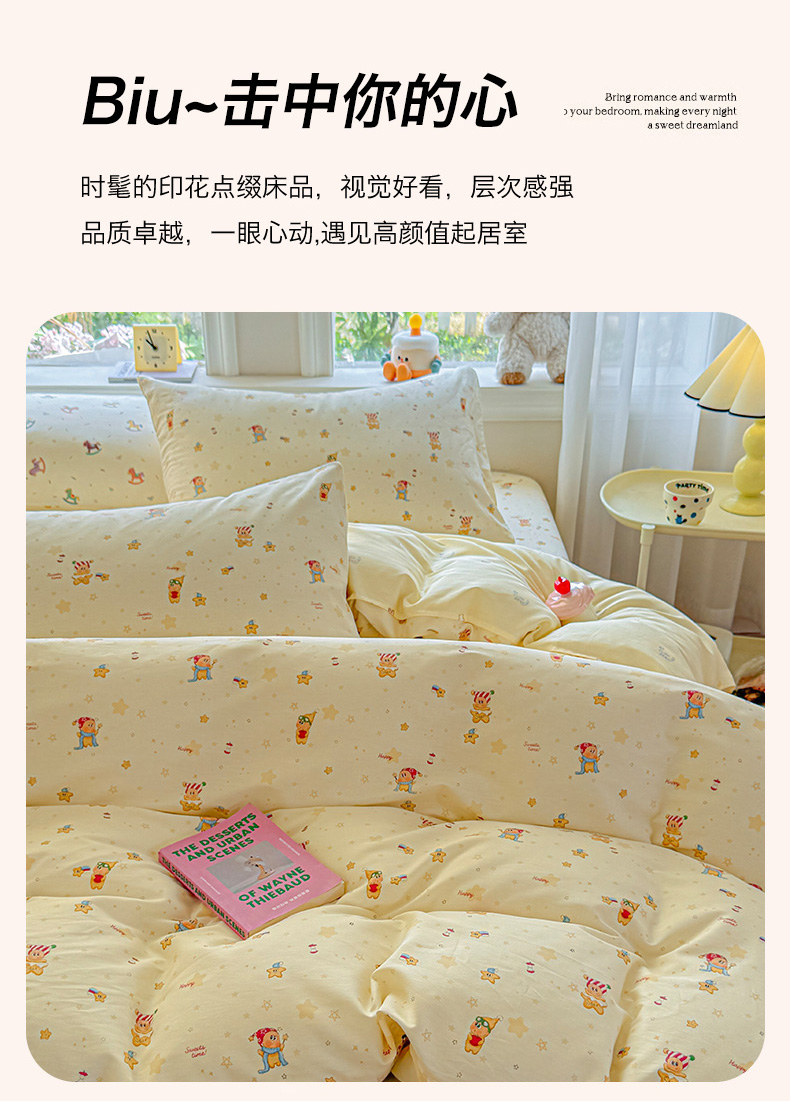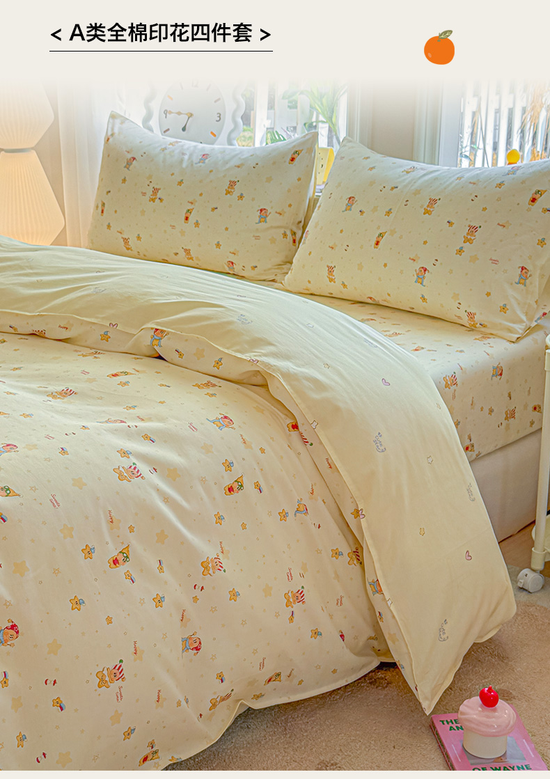 当前位置: 91家纺网 > 商品网购 > 床品套件 > 四件套 > 全棉普通四件套 > 优眠坊 2026新款全棉印花小清新单品系列-四件套 学生三件套(预留缩水) 芝士星星仔-四件套