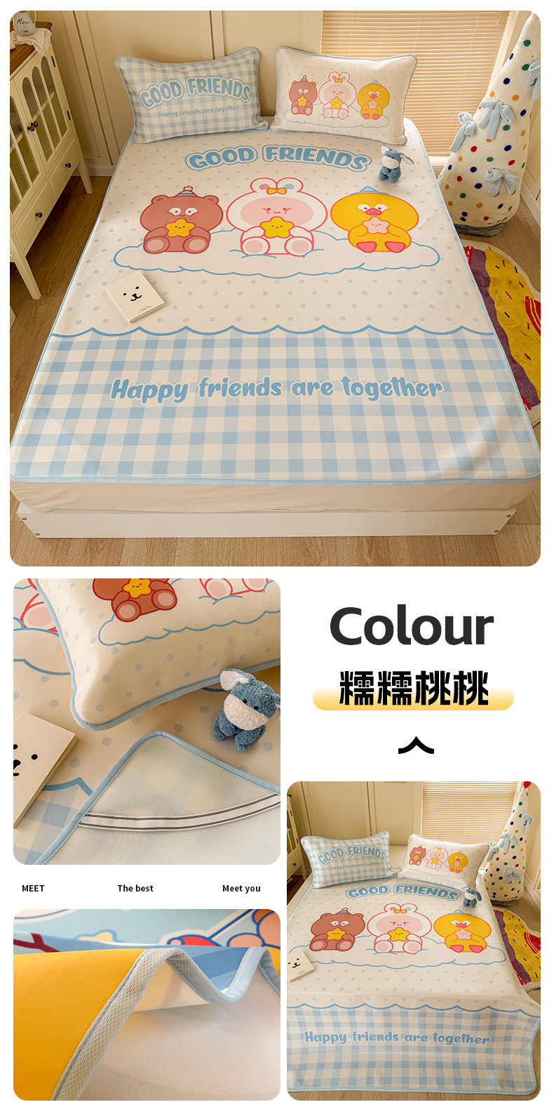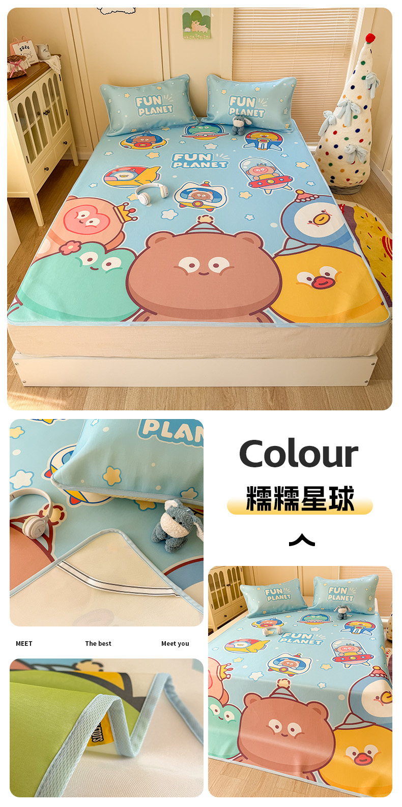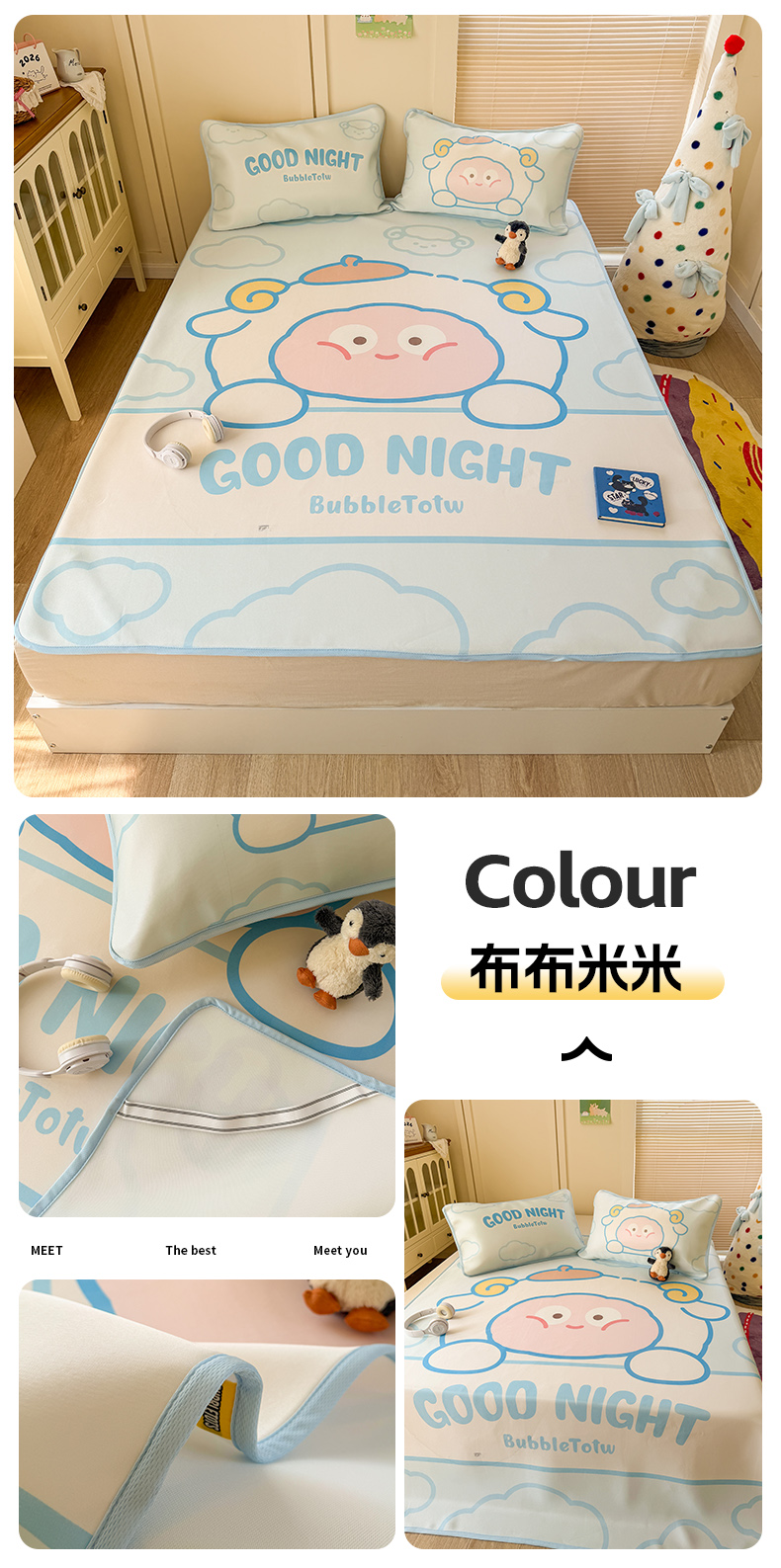商品名称:潮邦创意家居 2026新款A类小冰皮软席油光冰丝席-巴波布布系列【含A类检测报告】 布布糖糖
