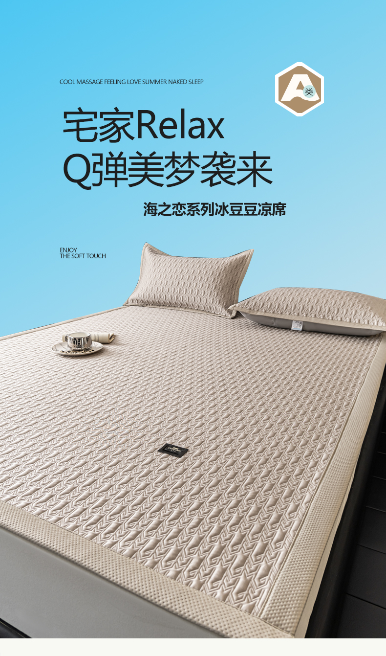 慕木家纺 2026新款A类复合三明治PE乙纶提花冰豆豆凉席床笠海之恋系列(提供买家秀) 海之恋-卡其床席款