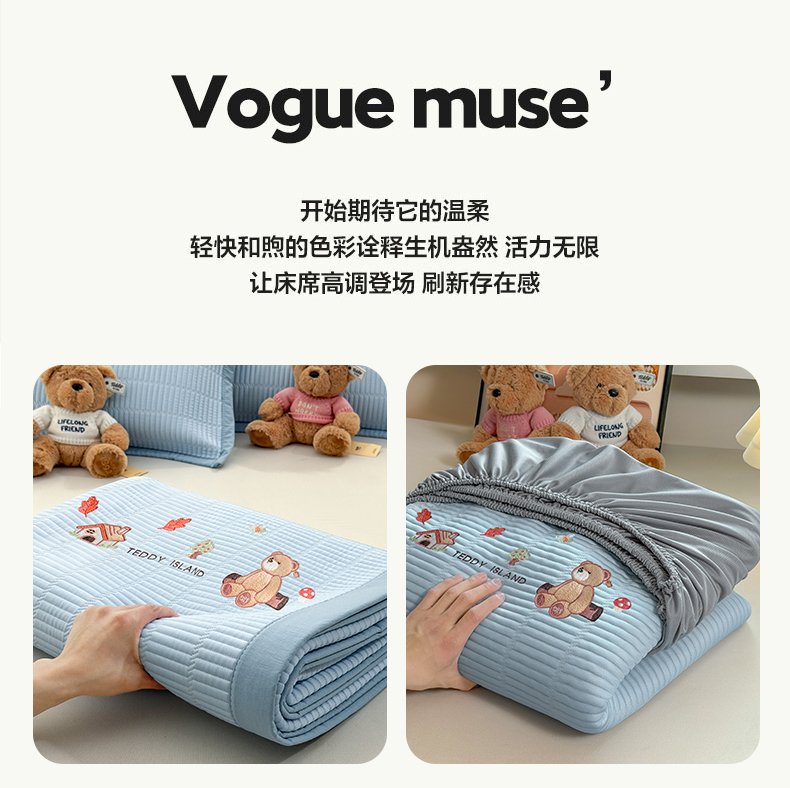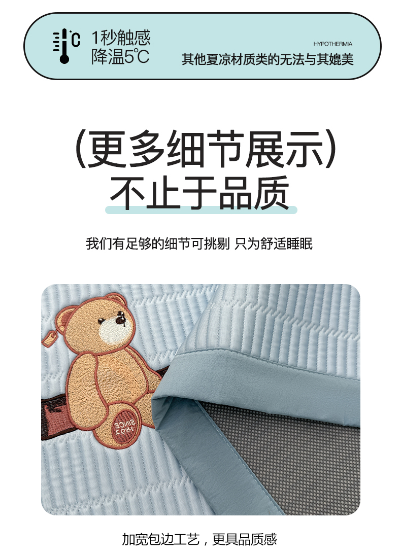 当前位置: 91家纺网 > 商品网购 > 床上用品 > 凉席 > 凉席套件 > 慕木家纺 2026新款A类高端刺绣pe乙纶冰豆豆席爱兰系列正版授权(提供买家秀) 蓝屿泰迪-蓝床席款