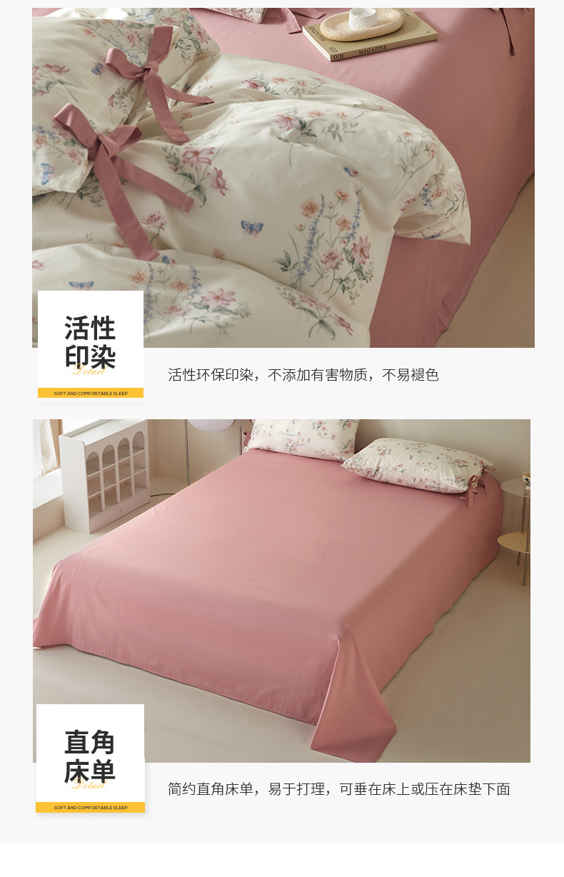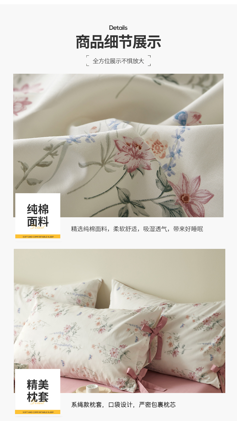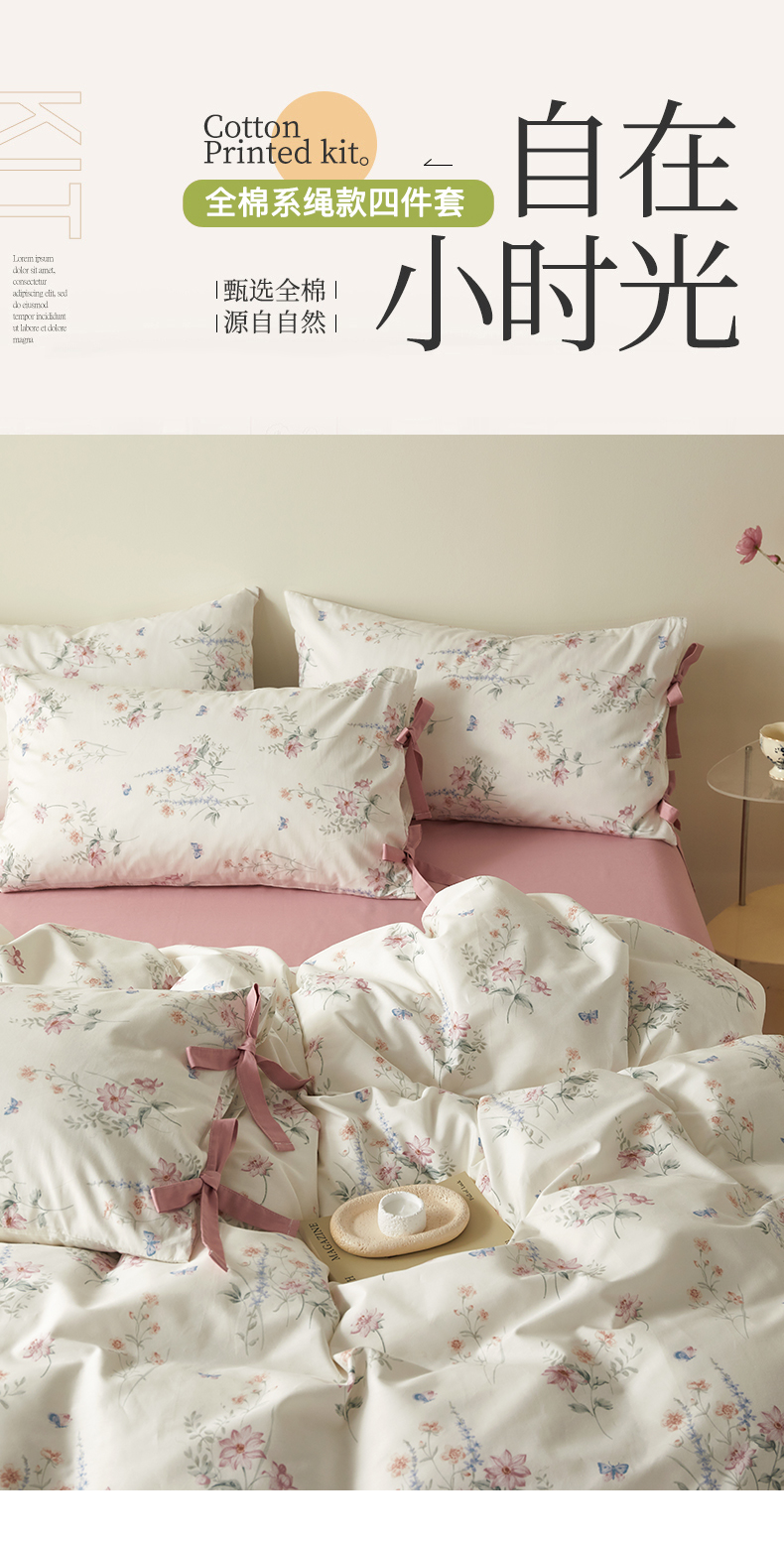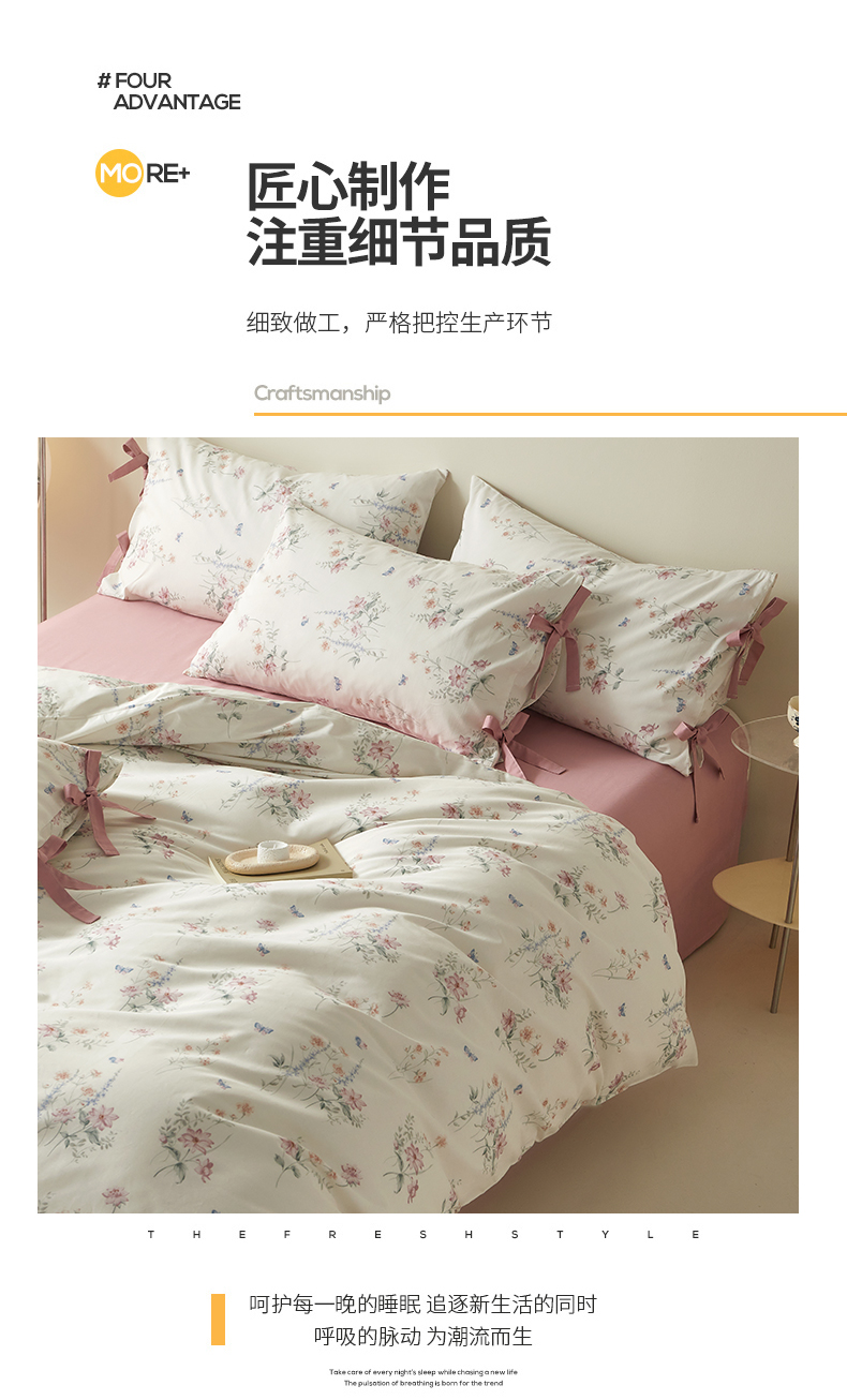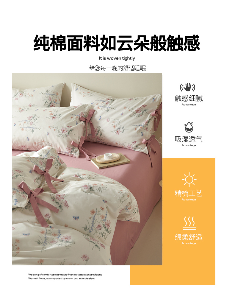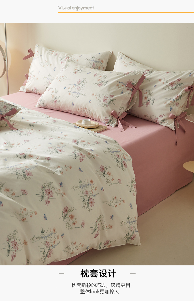 商品名称:绫韵家纺 2026新款春夏13372全棉蝴蝶结四件套系列 桃花源