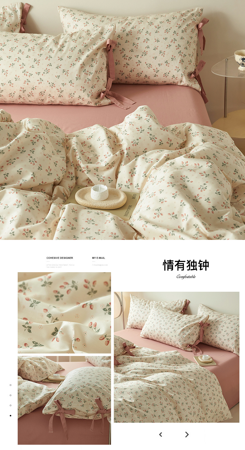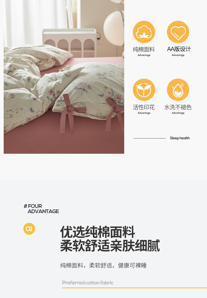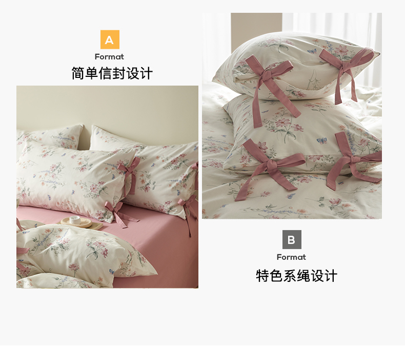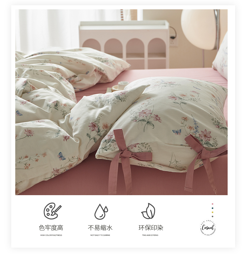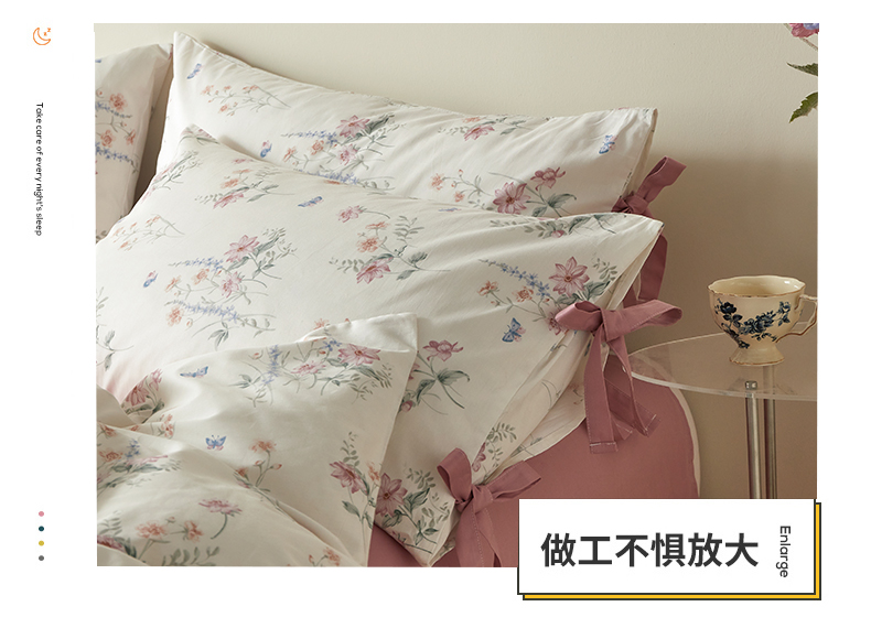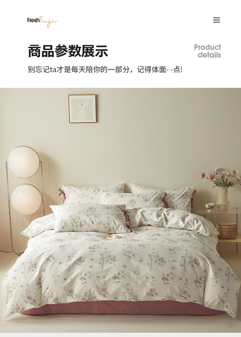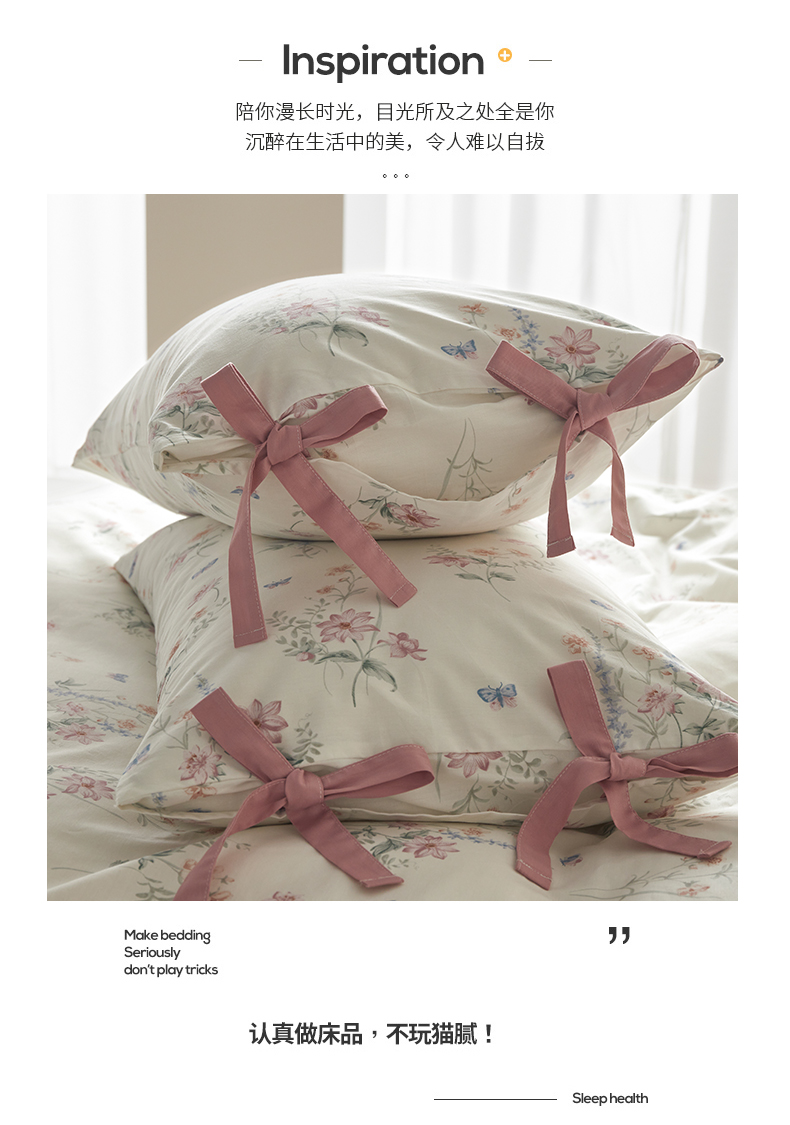 商品名称:绫韵家纺 2026新款春夏13372全棉蝴蝶结四件套系列 桃花源