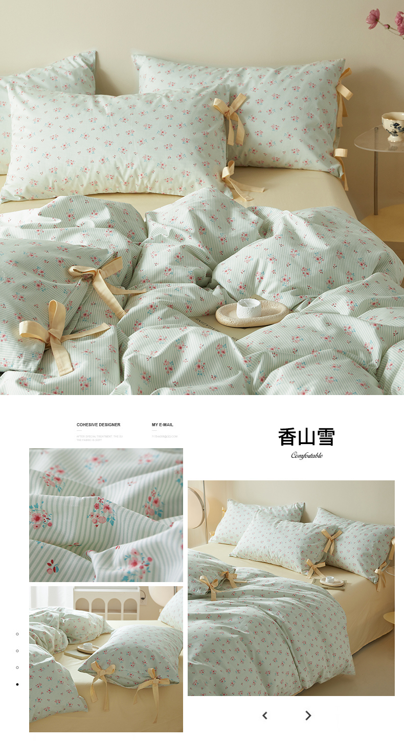 (总)绫韵家纺 2026春夏新款13372全棉ins小碎花纯棉田园风床单床笠四件套系绳蝴蝶结系列,贝贝利亚,沉香,丹恒,花田喜事