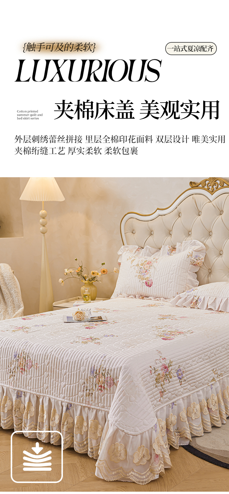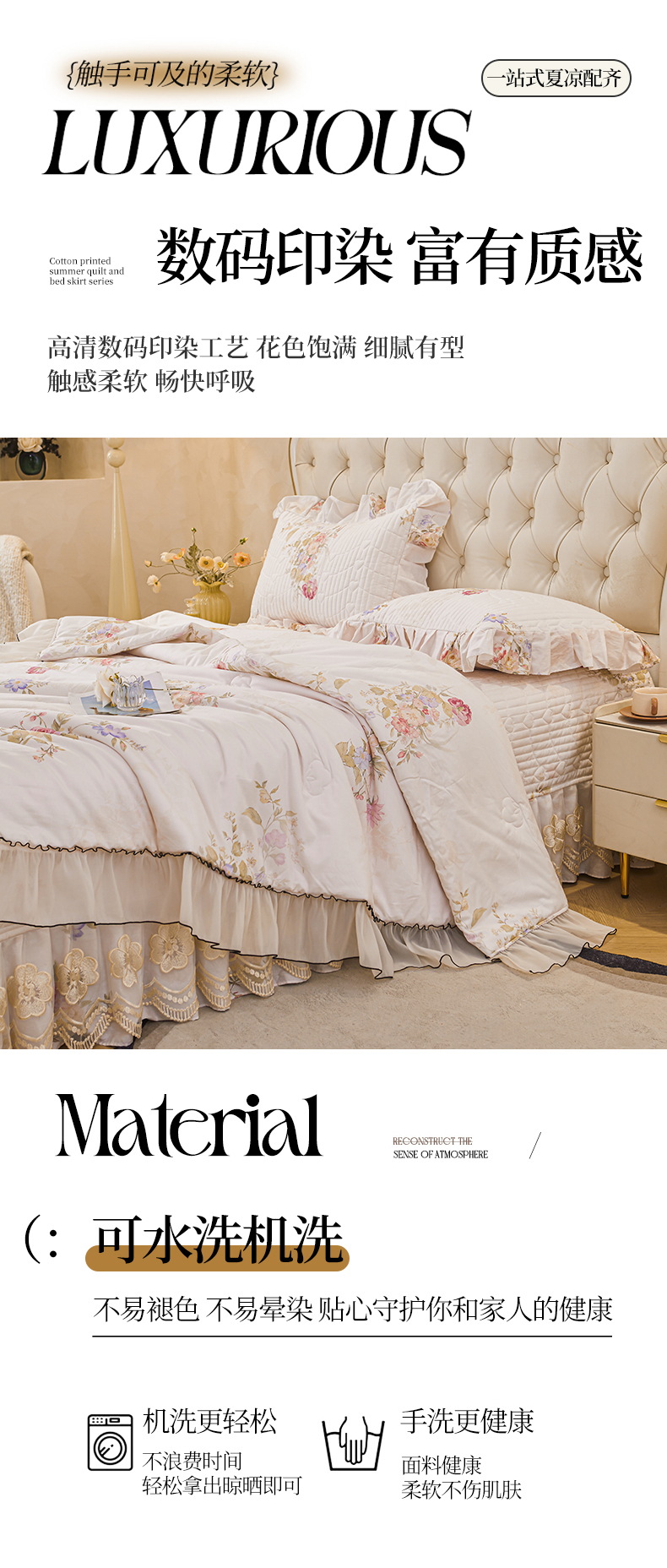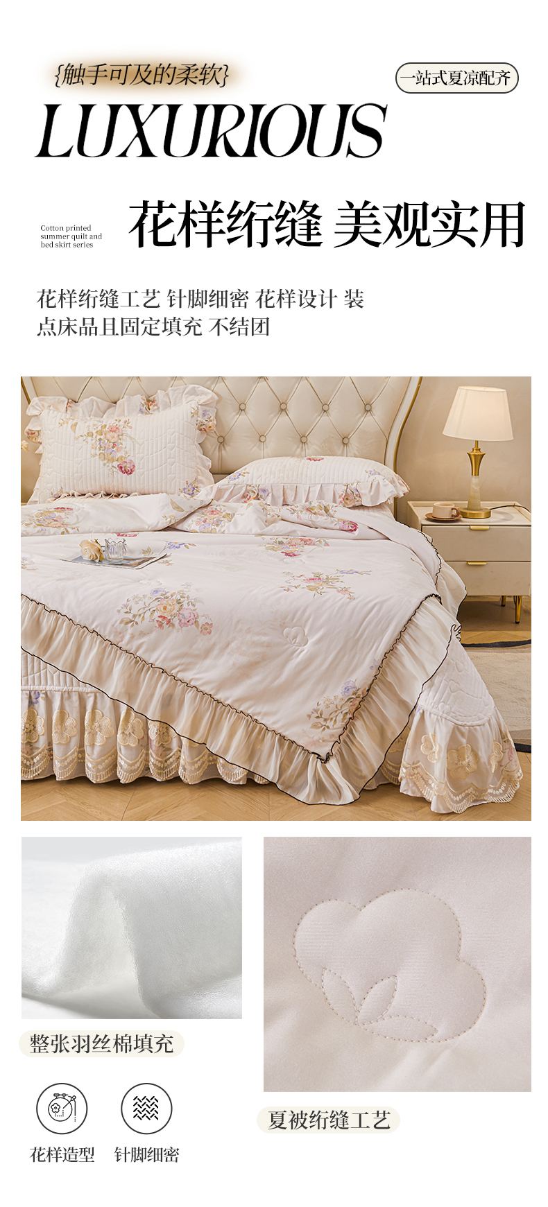 (总)宜凡家纺 2025新款全棉数码印花床裙三件套系列一,静若幽兰,浮云织梦,梦幻花园,陌上花开