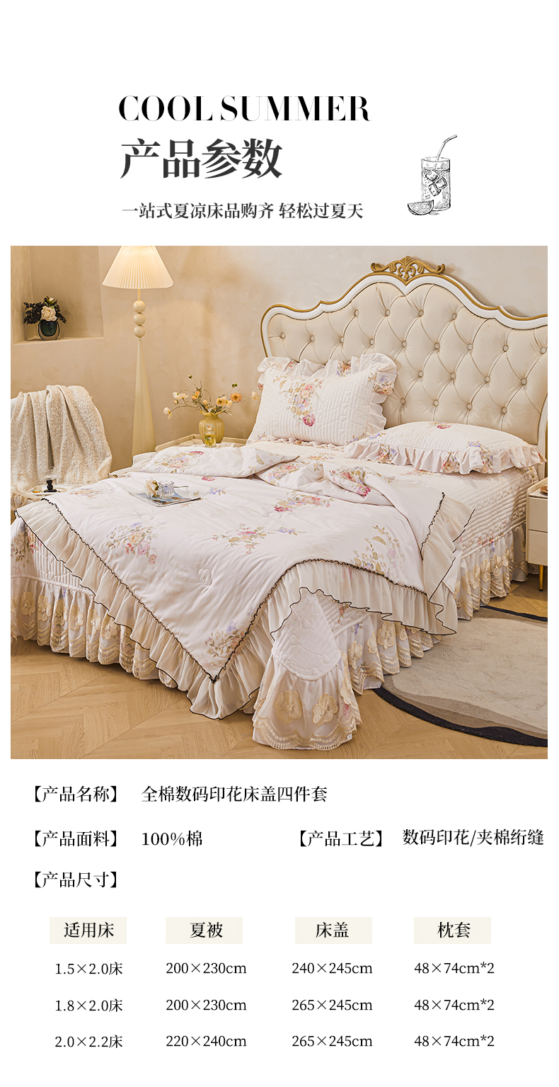 宜凡家纺 2026新款全棉数码印花夏被床盖四件套②号系列 澜晚