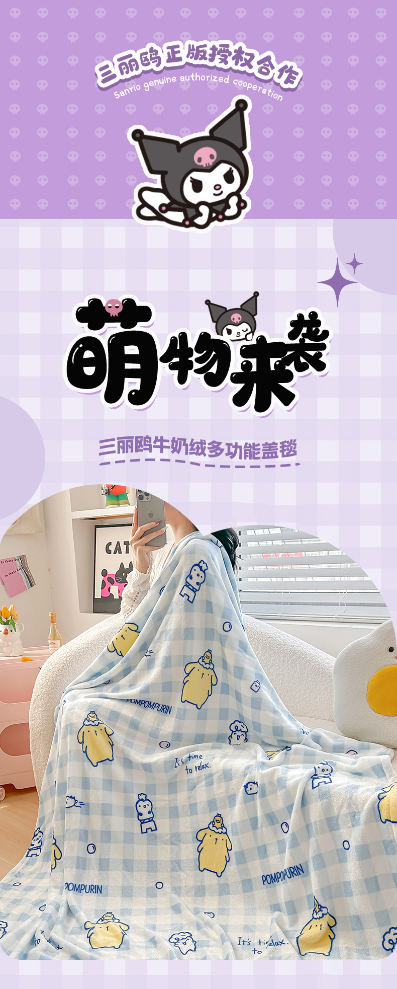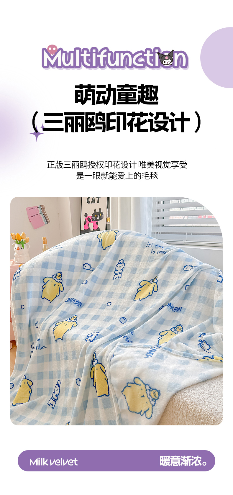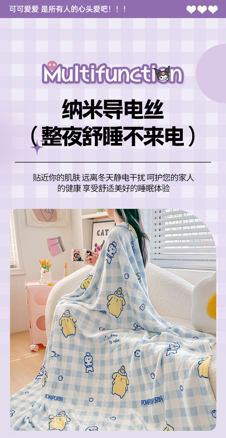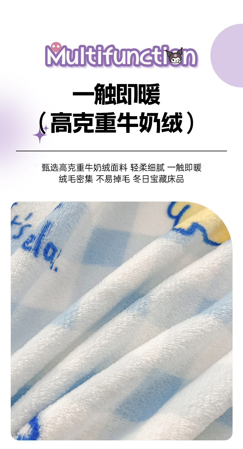 (总)博雅 2026新款三丽鸥小版牛奶绒盖毯午睡毯,小版-甜筒KT,小版-草莓蛋糕KT,小版-高贵KT,小版-蝴蝶结KT,小版-蓝格布丁狗,小版-满版玉桂狗,小版-美妆KT猫,小版-下午茶美乐蒂