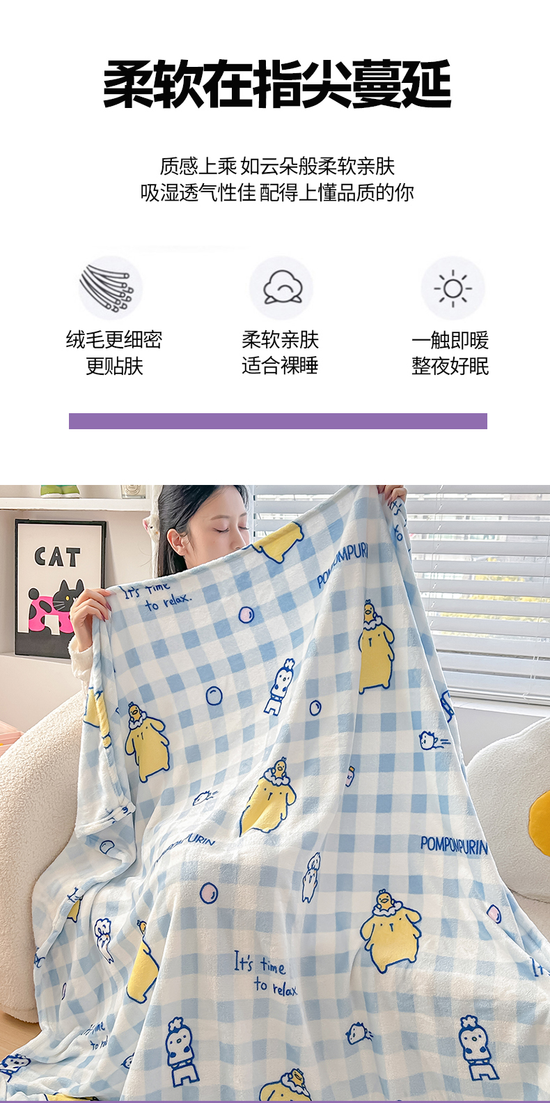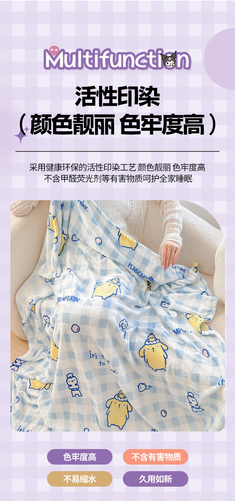 商品名称:博雅 2026新款三丽鸥小版牛奶绒盖毯午睡毯 小版-蓝格布丁狗