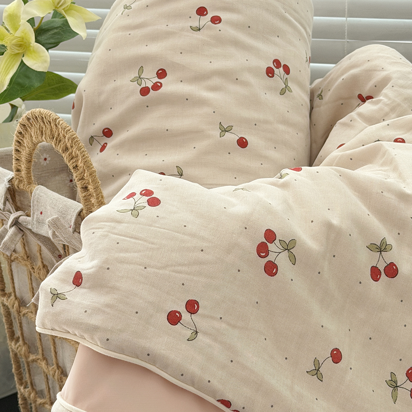(总)佰织鑫家居 2026新款全棉双层纱锦氨凉感夏凉被空调被,车厘子,初夏,可可樱桃,浅夏,青禾,晚香