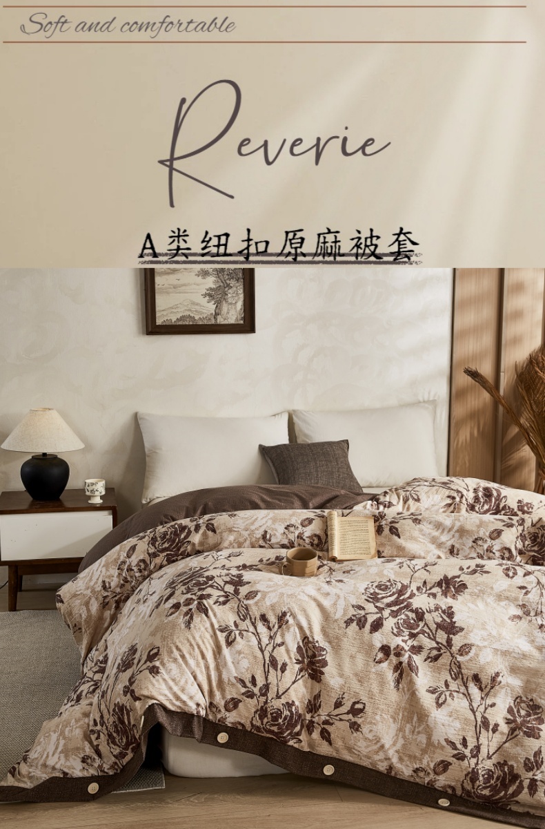 商品名称:梦舒羽 2026新款A类原麻纽扣加厚被套床单宿舍双人床仿亚麻被子 幽梦
