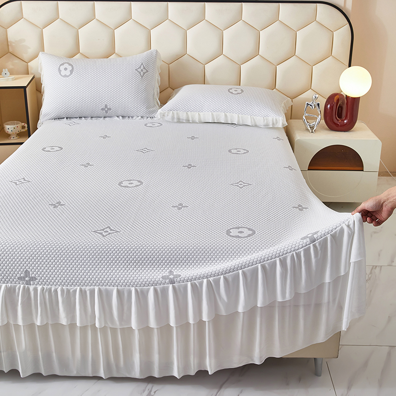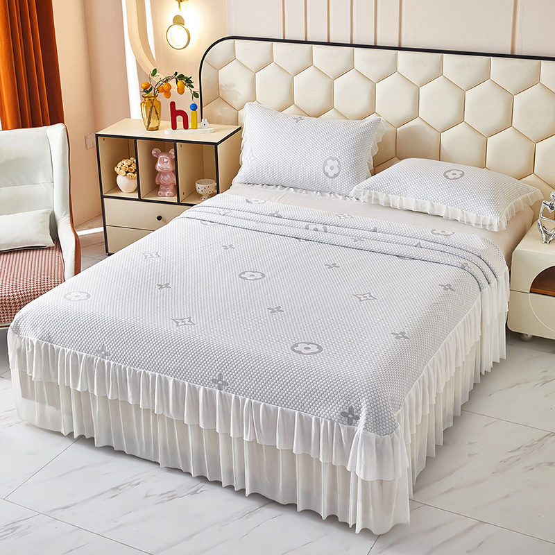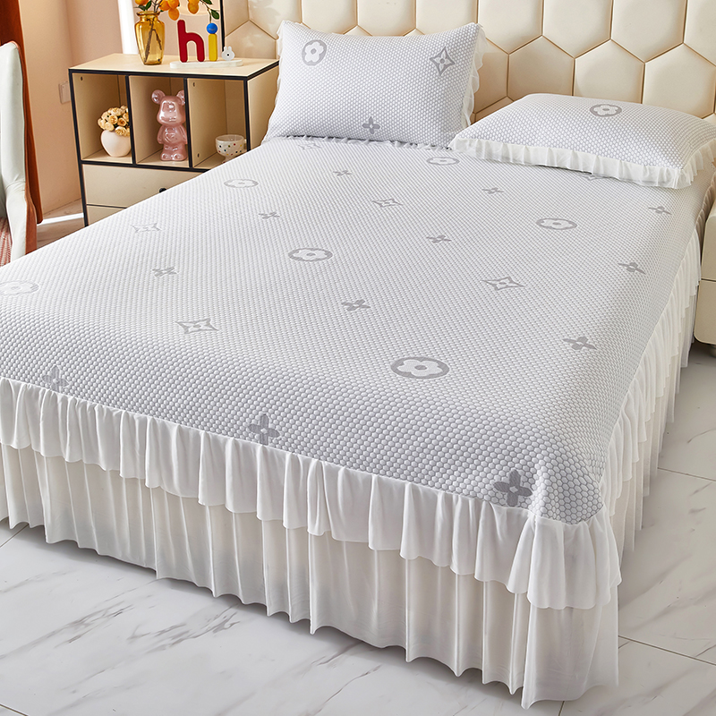 商品名称:栩裕纺织 2026新款冰豆豆凉席床裙款 灰色