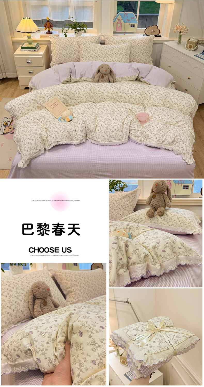 商品名称:漫仙阁家纺 2026新款云感泡芙棉四件套 巴黎春天