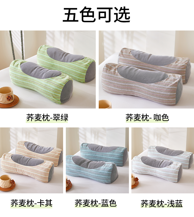 (总)梦叶草 2026新款全棉水洗棉三角牵引组合荞麦枕 枕头护颈枕芯,三角牵引组合荞麦枕-翠绿,三角牵引组合荞麦枕-咖色,三角牵引组合荞麦枕-卡其,三角牵引组合荞麦枕-米兰,三角牵引组合荞麦枕-新兰